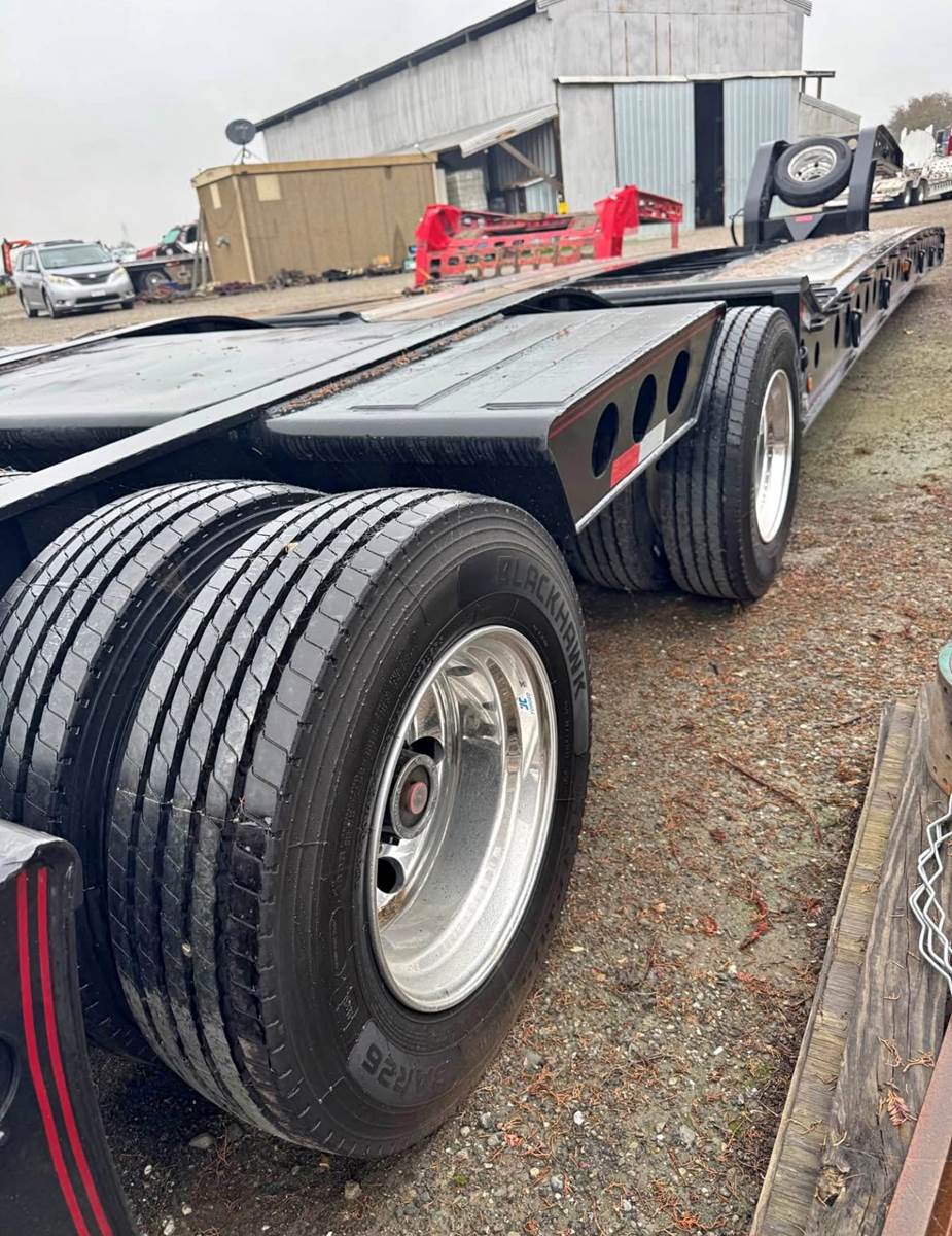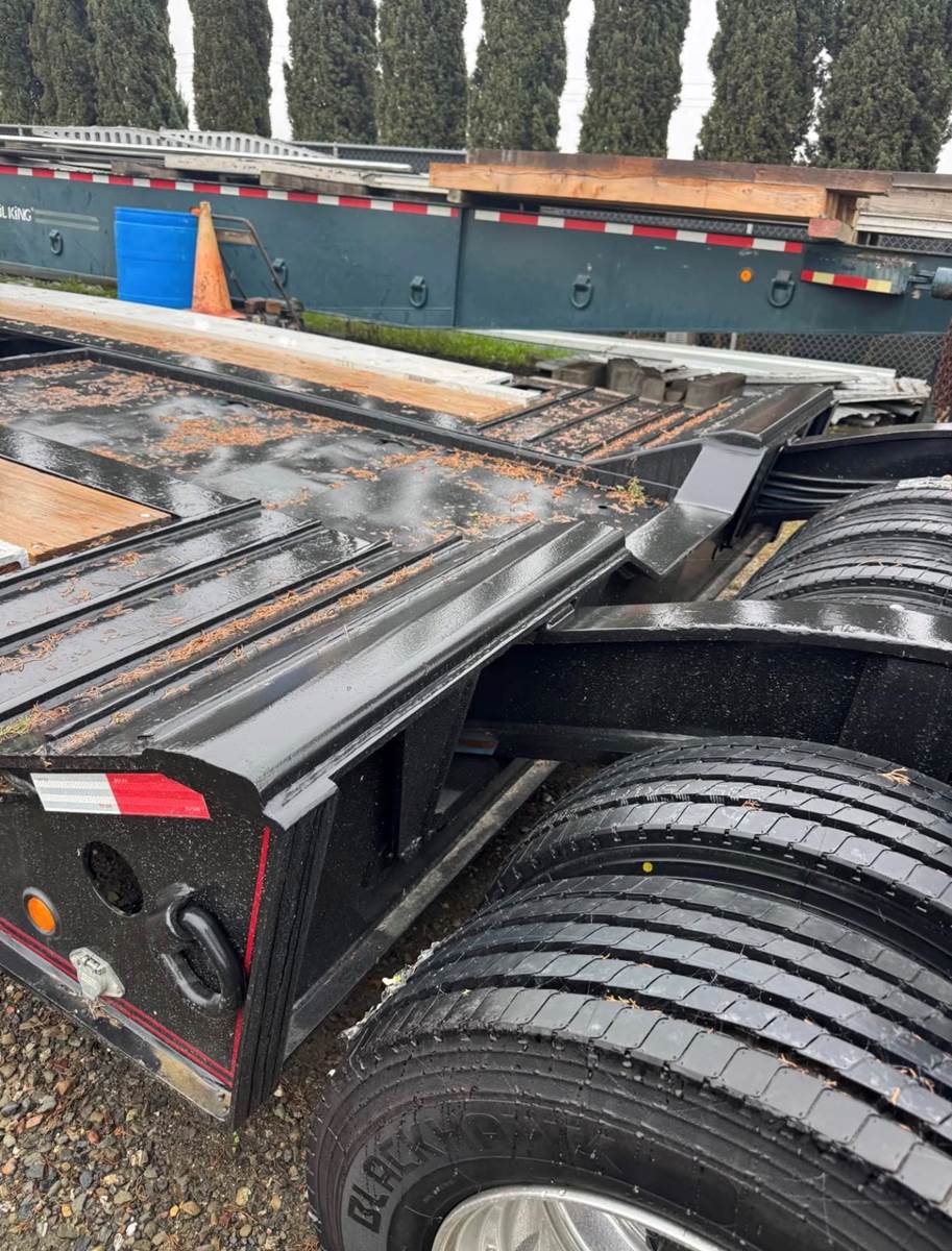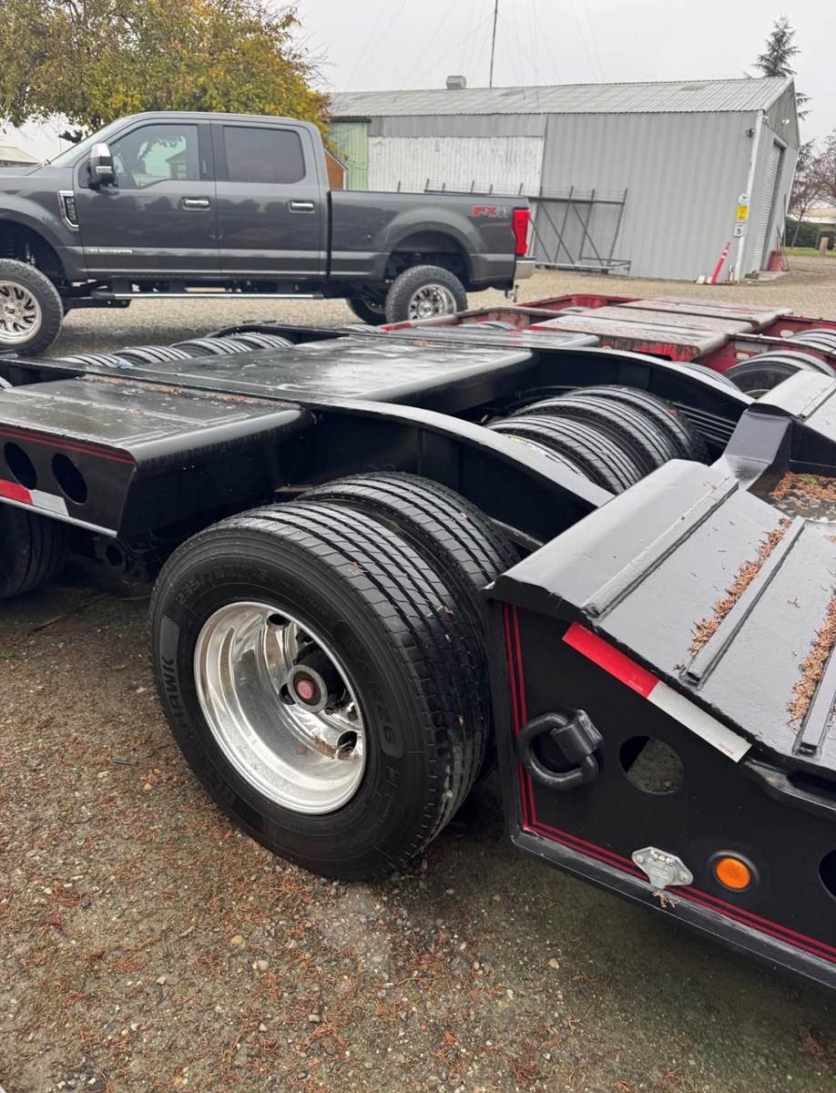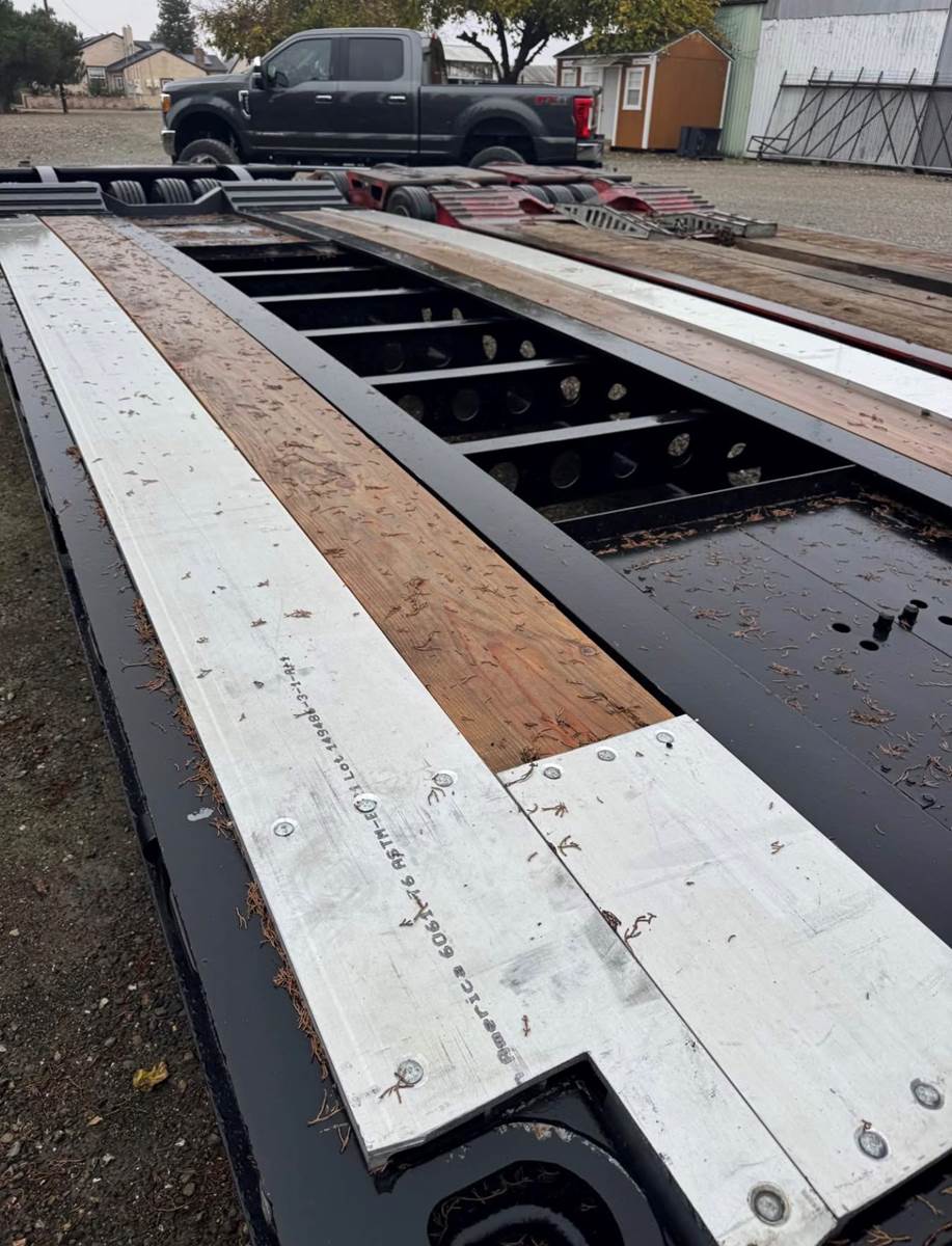 22’10” deck 8’6” wide Long neck , 4 rail trailer All new tires