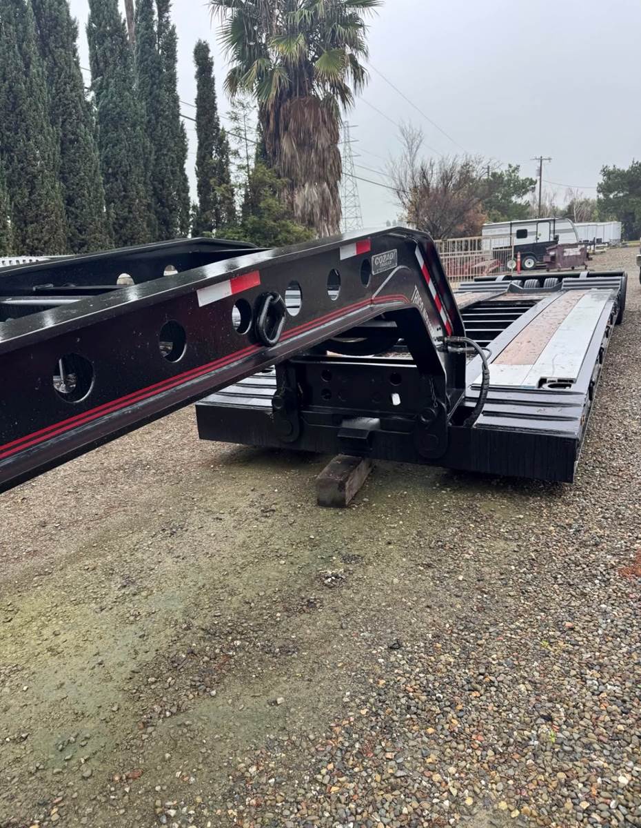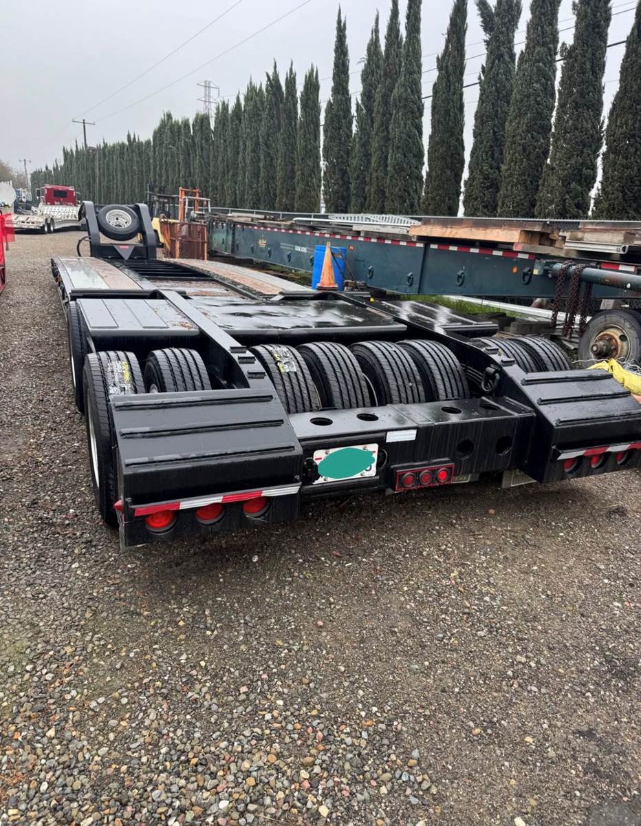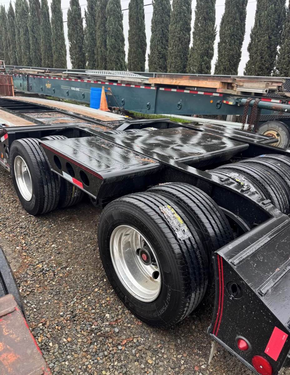 22’10” deck 8’6” wide Long neck , 4 rail trailer All new tires