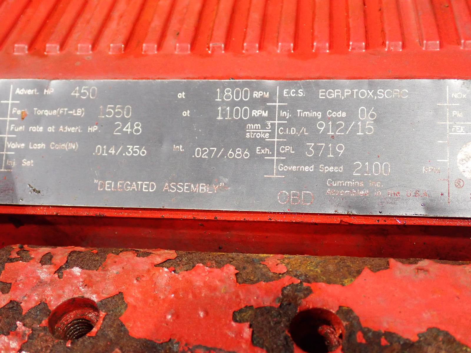 2012 Cummins ISX15 450 Diesel Engine CPL 3719