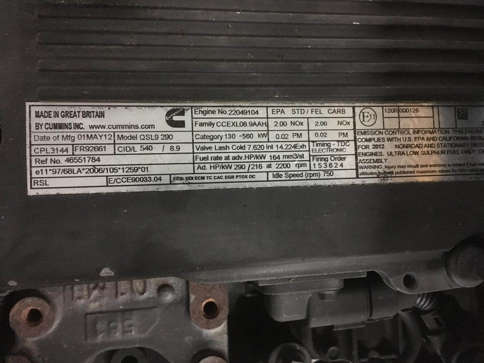 == Information in English == Type: Engine, Empty weight: 720 kg, Dimensions (LxBxH): 130 x 80 x 125 cm, Type number: QSL9 CPL0422 Engine...