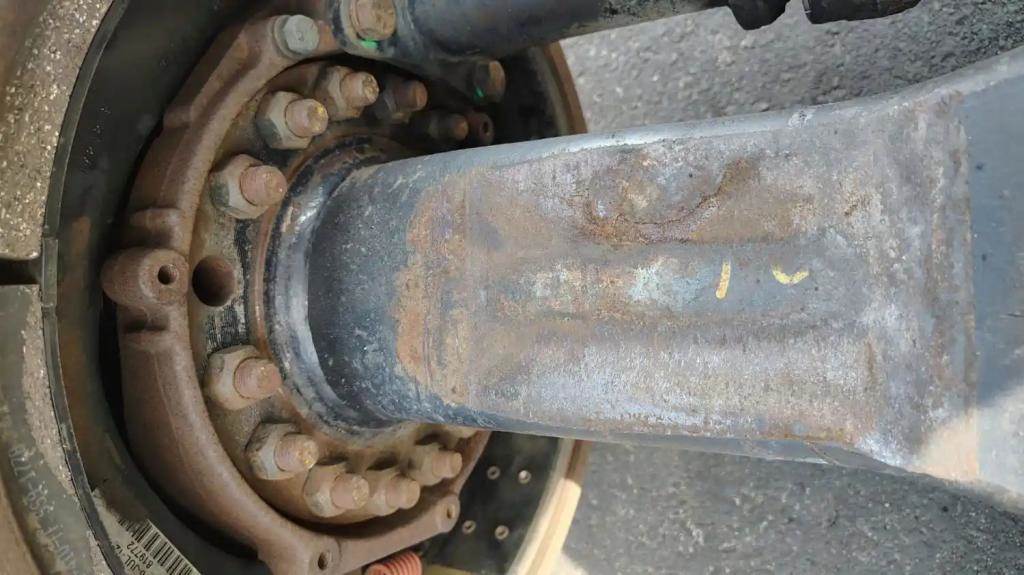 Spicer Rear Axle Housing, S23-590, , 10 Hole Pilot, Air Drum Brakes, P/N 324523, S/N U122151299. Removed from 2012 Yard Goat Suspension. HOUSING ONLY, DIFF SOLD SEPARATELY.