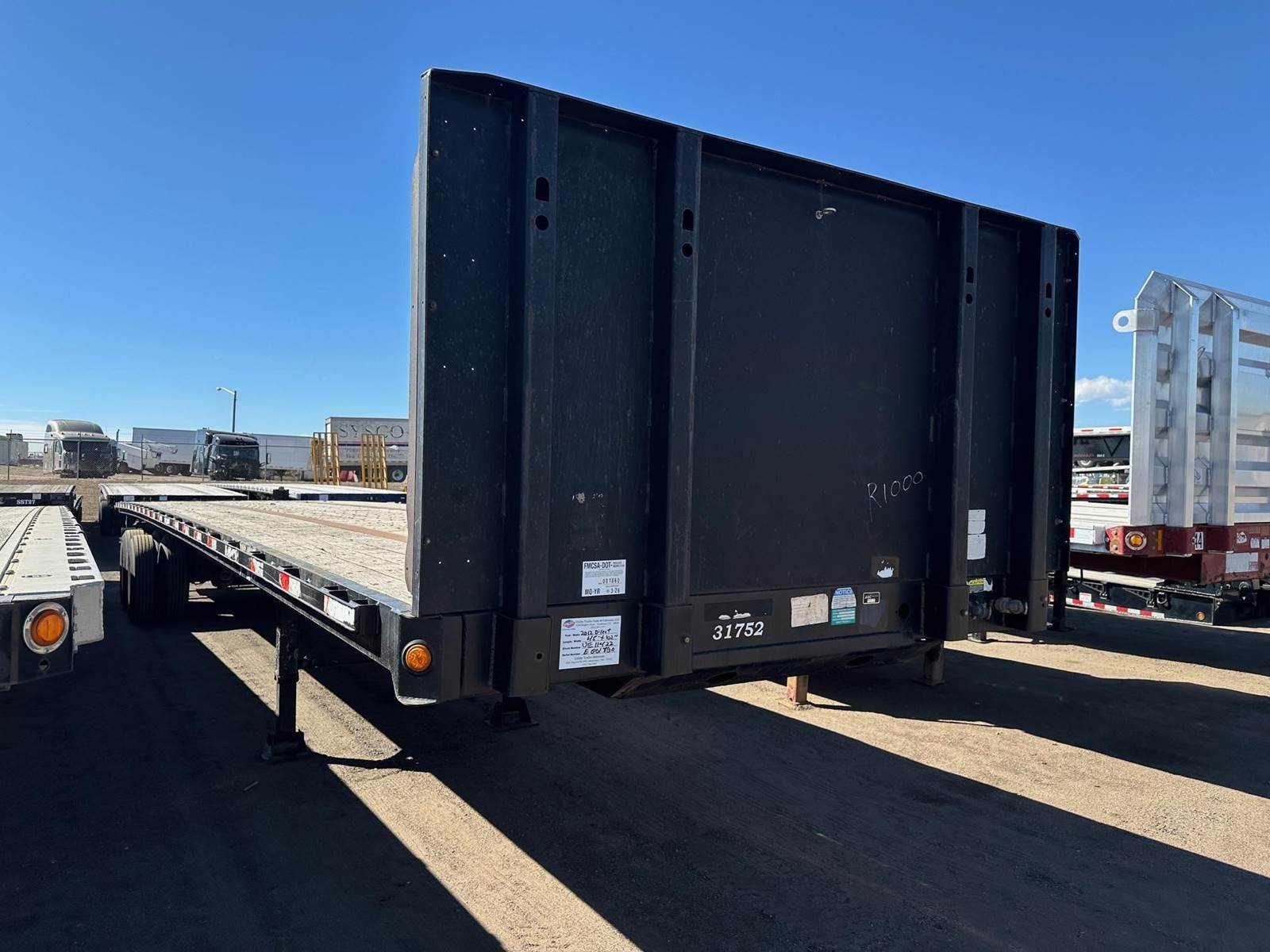 2012 Direct Steel Flatbed w Forklift Kit, 45' x 102", Steel Main Beams and Rails, Bulkhead, Wood Deck, Stake Pockets, Pipe Spools, Closed Tandem, Spring Ride w Slider, Steel Wheels, 22.5LP Tires, Forklift Kit.
