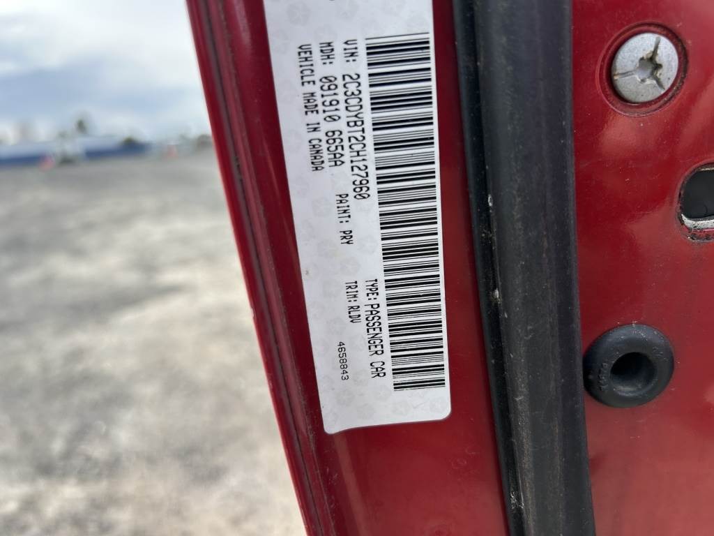 Location: Spokane WA ***Asset Recovery Consignment*** VIN: 2C3CDYBT2CH127960 Engine: Hemi 5.7L V8 Gas Transmission: Automatic *Evidence Seizure* Window louvers, spoiler, power windows, power mirrors, power locks, cruise control, push button start, A/C, AM/FM, 245/35R20 tires, *** SOLD WITH STATE OF WASHINGTON VEHICLE CERTIFICATE OF TITLE BRANDED "ODOMETER - NOT ACTUAL" ***, Miles: 160,406