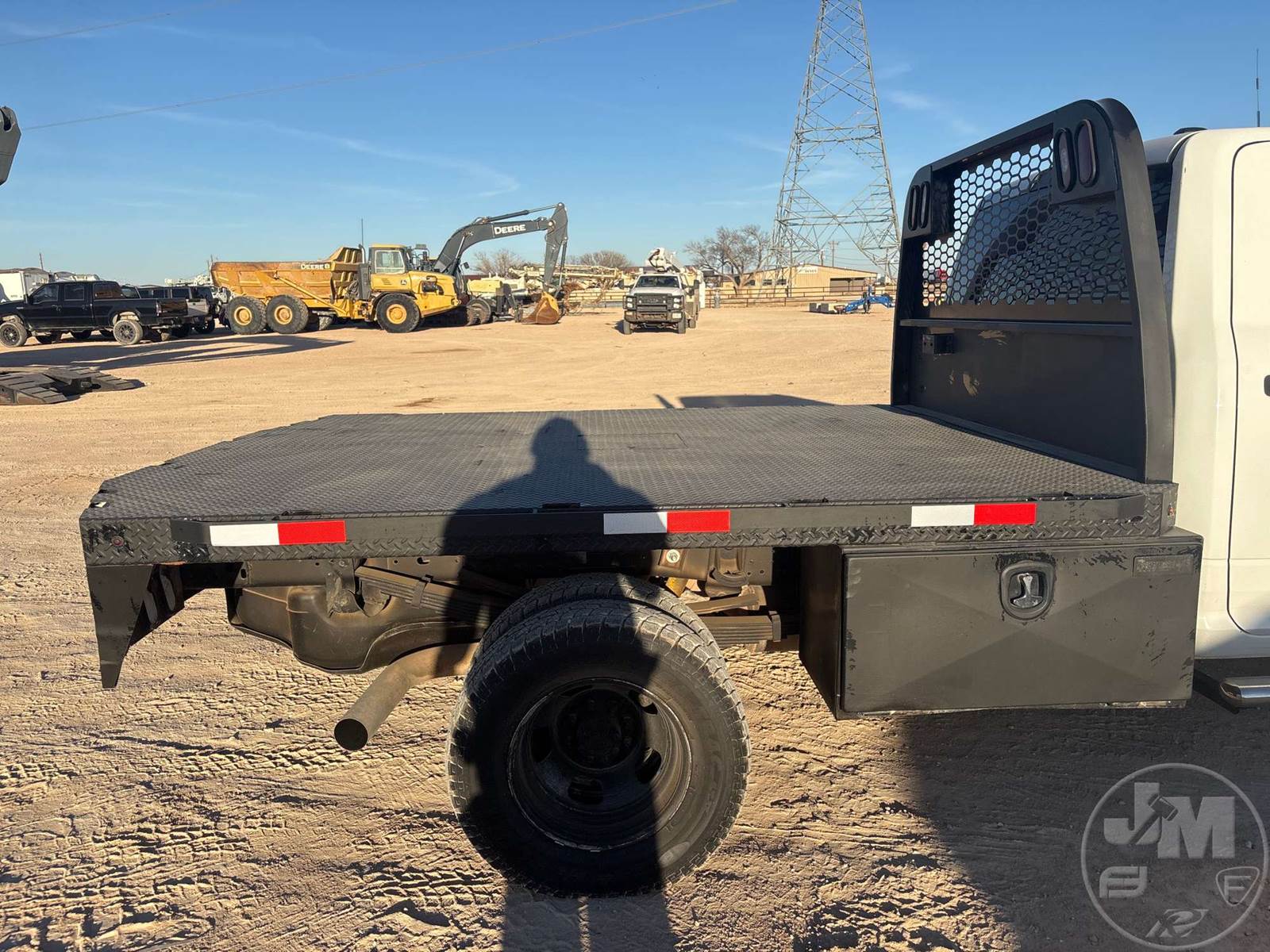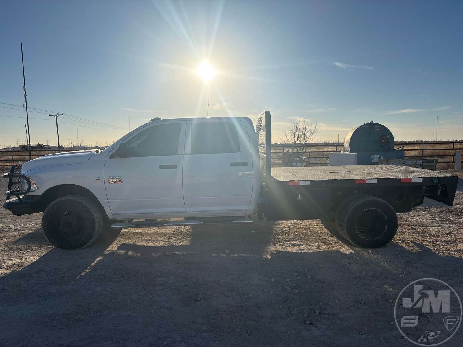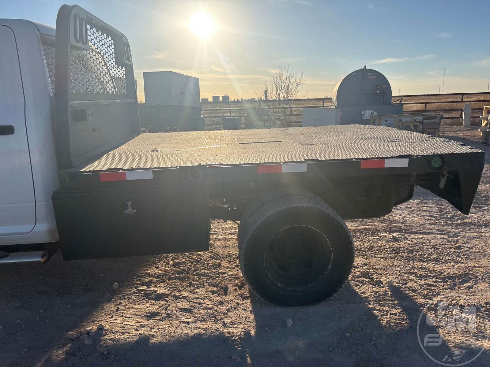 CREW CAB 4X4 FLATBED TRUCK, 9 FT STEEL BED, CUMMINS, 6.7 L TURBO DIESEL, AUTOMATIC, SPRING SUSPENSION, HEADACHE RACK, 172 IN. WB, 13000LB GVWR, STEEL DISC WHEELS, HOUR METER READS: 9890, ODOMETER READS: 204762, ***BACK LEFT AND BACK RIGHT WINDOWS BROKEN***