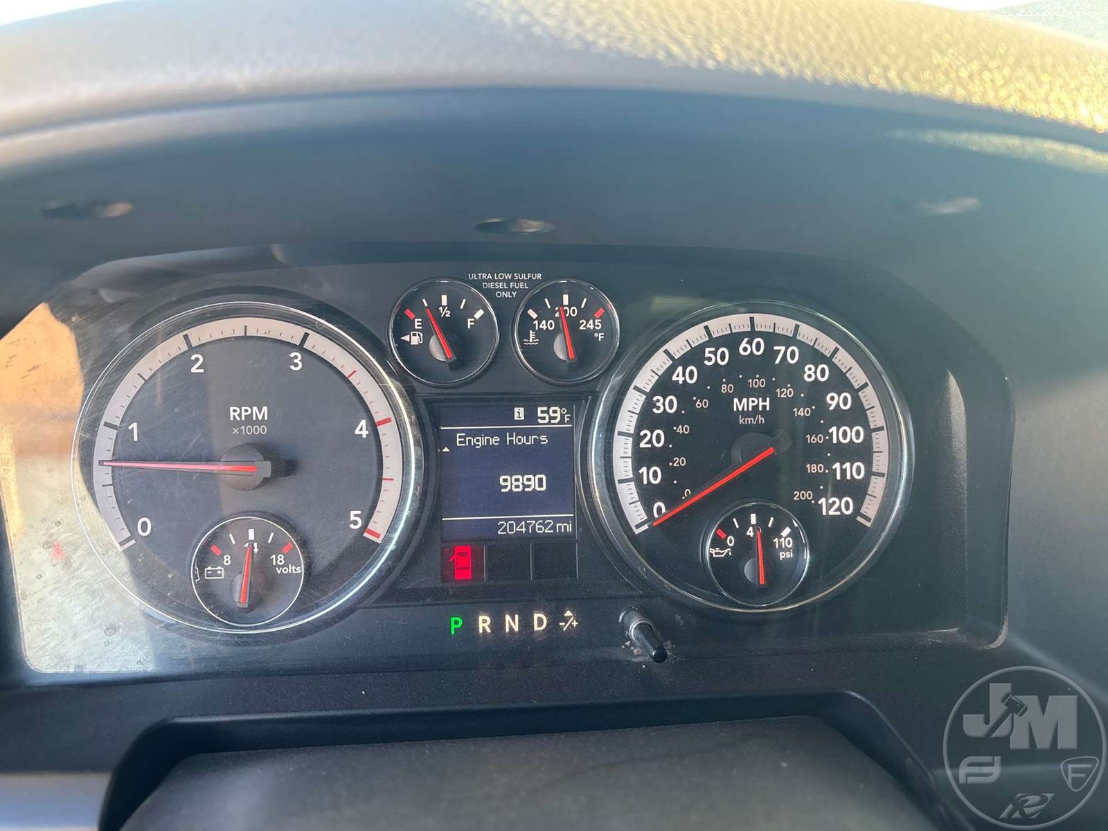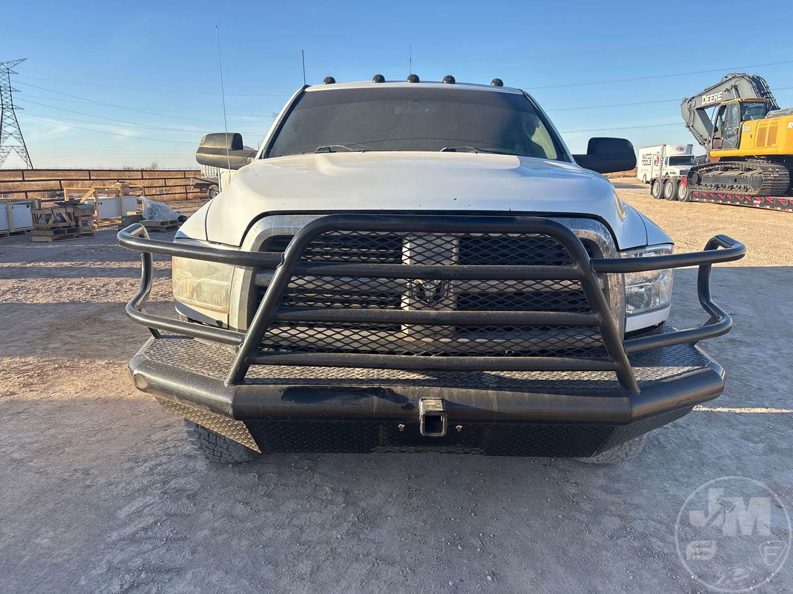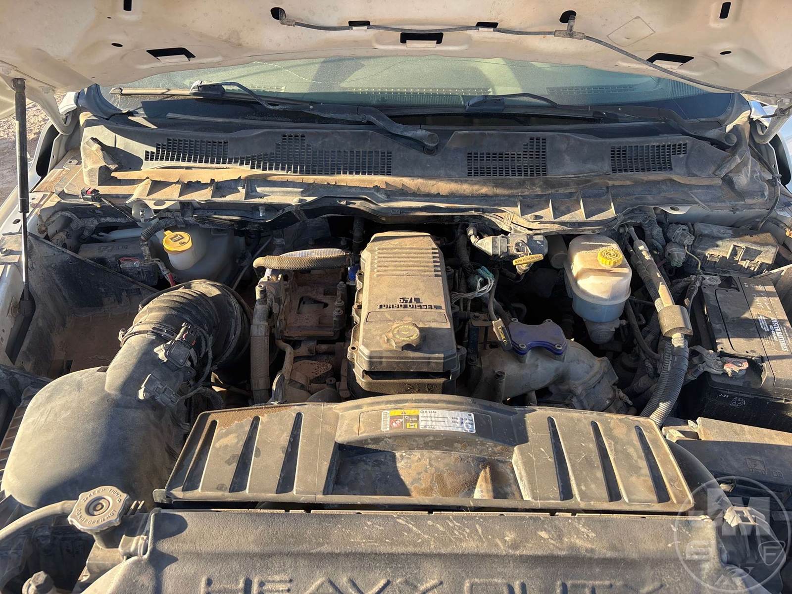 CREW CAB 4X4 FLATBED TRUCK, 9 FT STEEL BED, CUMMINS, 6.7 L TURBO DIESEL, AUTOMATIC, SPRING SUSPENSION, HEADACHE RACK, 172 IN. WB, 13000LB GVWR, STEEL DISC WHEELS, HOUR METER READS: 9890, ODOMETER READS: 204762, ***BACK LEFT AND BACK RIGHT WINDOWS BROKEN***