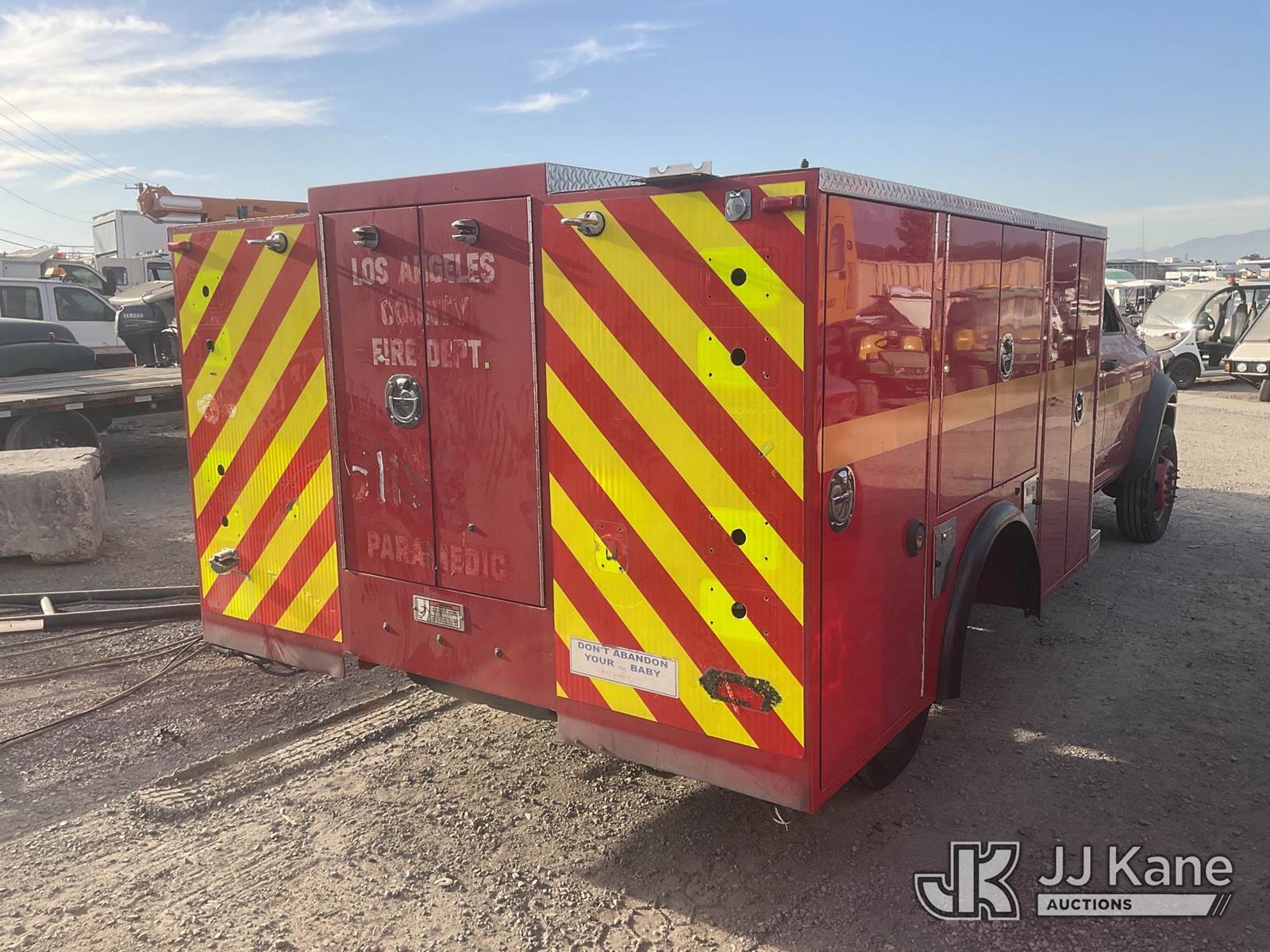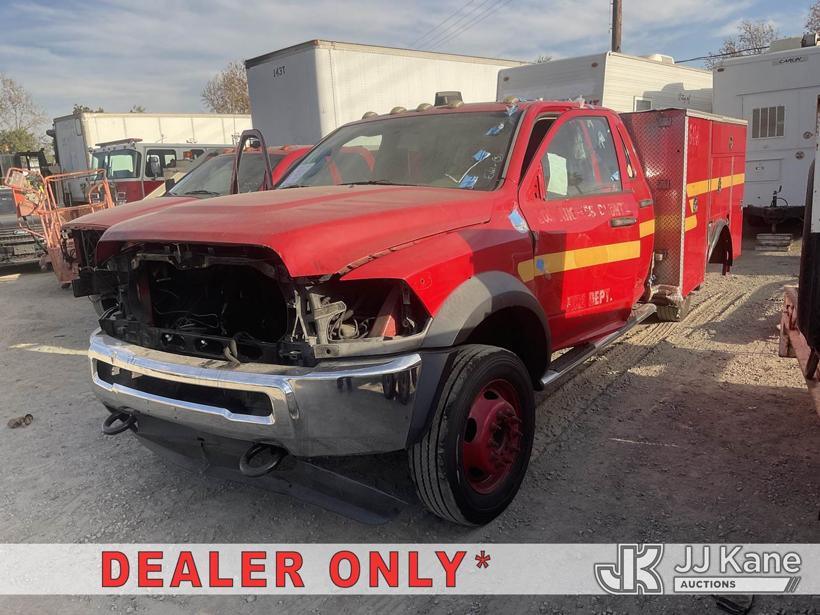 2012 Dodge Ram 4500 Crew-Cab Enclosed Service Truck, 6.7L Turbo Diesel Auto, A/C, True Mileage Unknown Fire Rescue Truck (Not Running, Condition Unknown) (Stripped of Parts, Missing Engine, Missing Transmission) (Bidding Restricted to Licensed Vehicle Dealers Only), May be subject to ARB Regulations This is a Titled Item NOTE: This unit is being sold AS IS/WHERE IS via Timed Auction and is located in Jurupa Valley, CA. Inspection & preview days for this unit are the 2 business days prior to the first day of items closing for this auction, item is located at 4510 Muth Way Jurupa Valley, CA 92509 and hours of operations are 8a-4p. For pre-sale questions, please contact please contact Office Staff @ (310) 353-7140. Dealer License Number 45696. (Buyer is responsible for removal. Assistance by consignor or JJ Kane Auctions is not assured.)