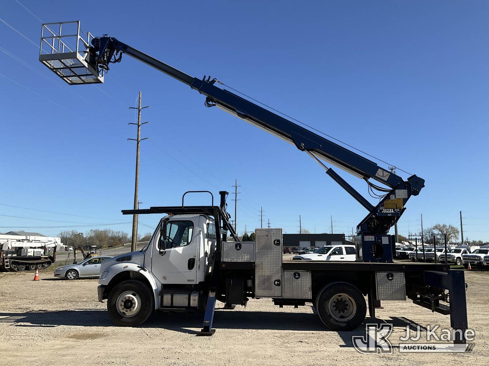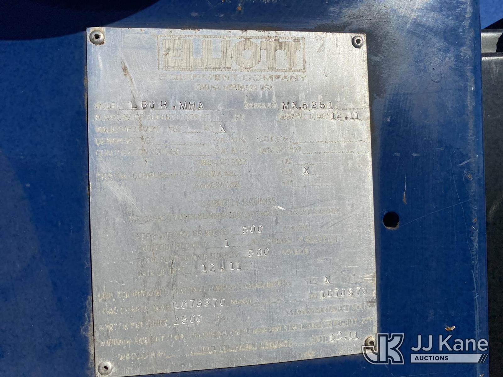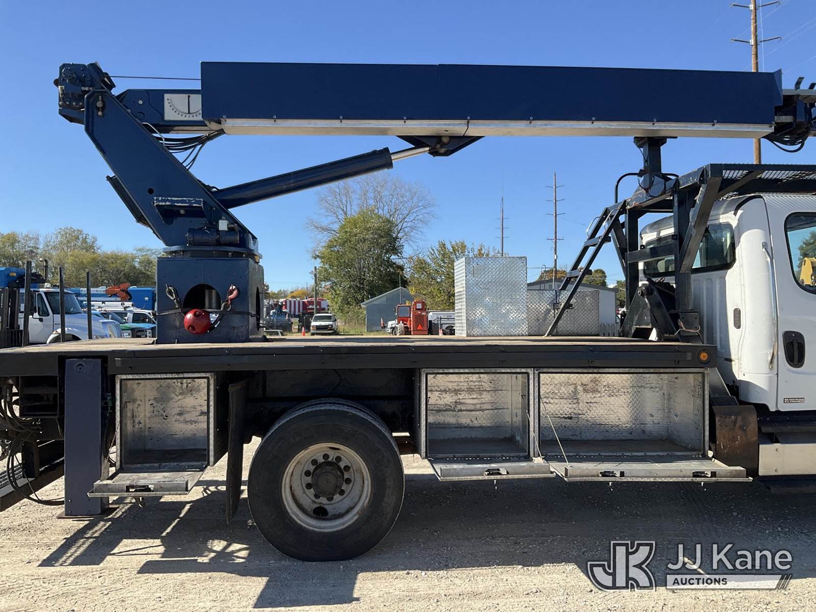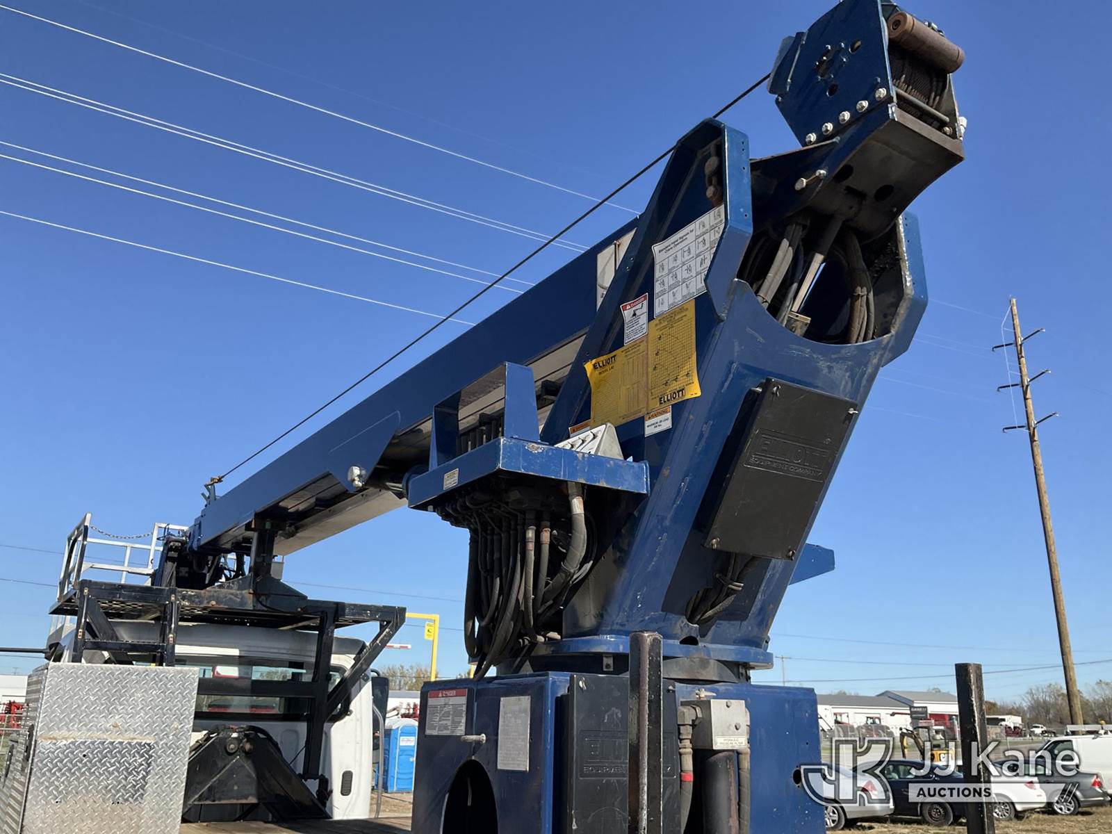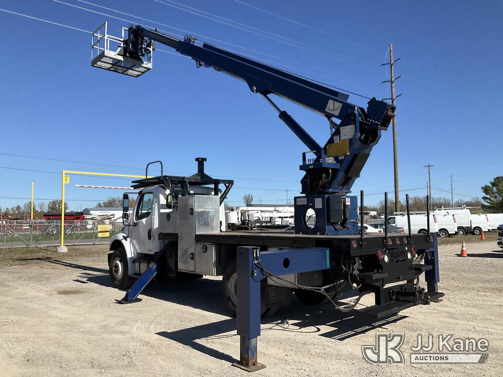 Elliott L60, 5,900 Lb Hydraulic Crane s/n MX5251, with 61 ft. max sheave height, 46 ft. 3-section hydraulic boom, heel winch, headache ball, removeable basket, rear mounted on 2012 Freightliner M2 106 T/A Flatbed/Utility Truck, 6.7L L6 DIESEL Auto, 4X2, DIESEL, A/C, (301,452 miles) (Runs, Moves, & Operates) (Not Original Basket, No Basket Jib, Rust) (Reads 22,156 hours) This is a Titled Item NOTE: This unit is being sold AS IS/WHERE IS via Timed Auction and is located in Charlotte, MI. Inspection & preview days for this unit are the 2 business days prior to the first day of items closing for this auction, item is located at 750 Island Hwy Charlotte, MI 48813 and hours of operations are 8a-4p. For pre-sale questions, please contact Corey Cook at (517) 983-0796 or corey.cook@jjkane.com (Missing manuals, See Auction Company for Manufacturers Information to obtain manuals) (Buyer is responsible for removal. Assistance by consignor or JJ Kane Auctioneers is not assured.)