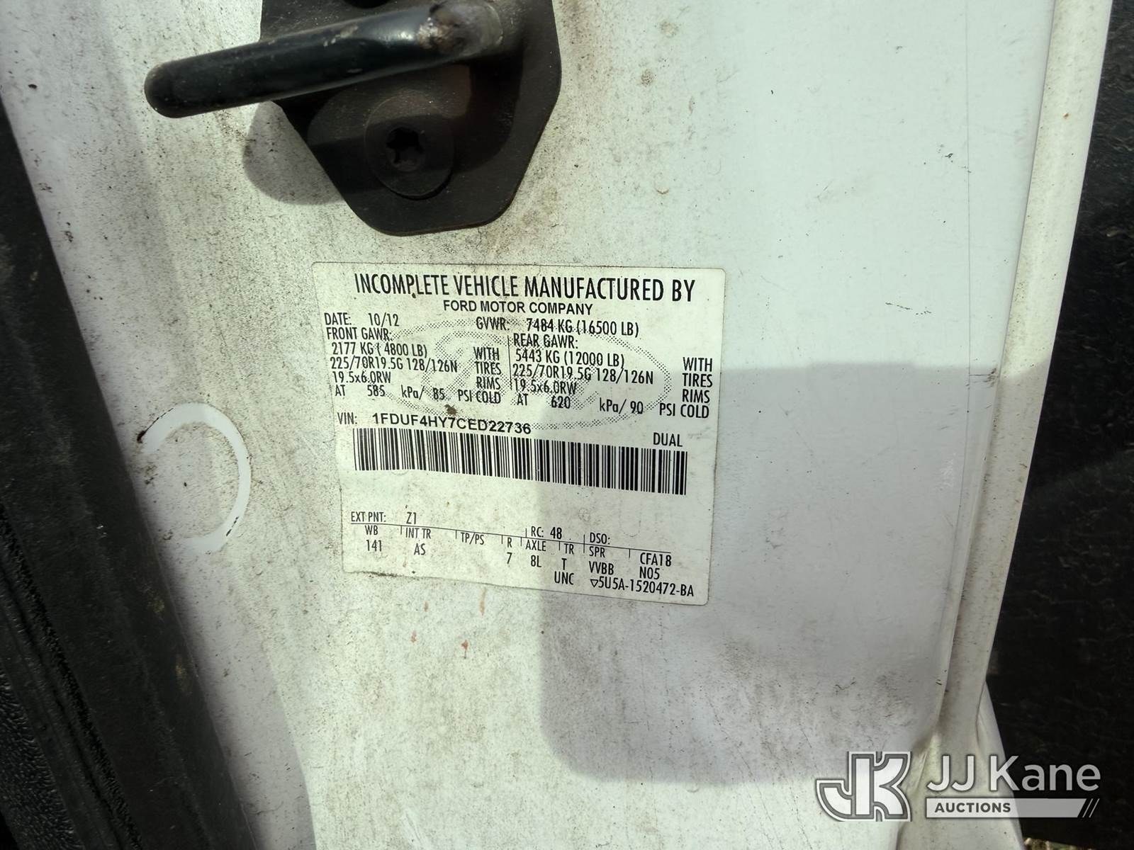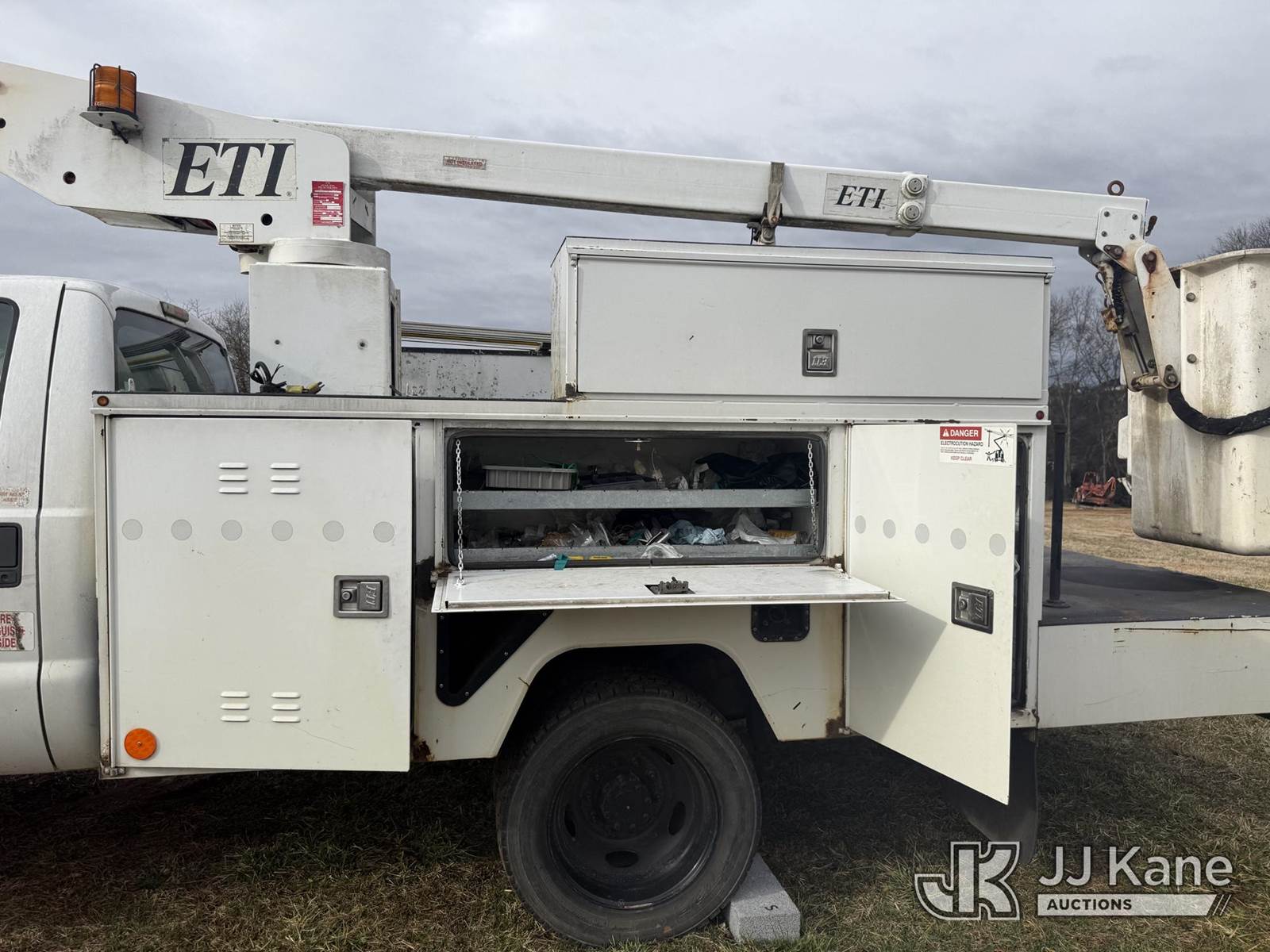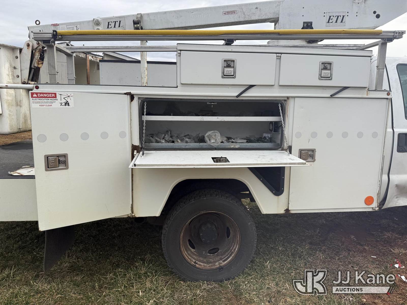 ETI ETT29-SNT, 34 ft, Telescopic Insulated Bucket Truck s/n 1212T99886, with single-man bucket, mounted behind cab on 2012 Ford F450 4x4 Service Truck, 10-cyl gas, Auto, True Mileage Unknown (Not Running, Missing Parts, Missing Tire, Condition Unknown, Upper Condition Unknown) This is a Titled Item NOTE: This unit is being sold AS IS/WHERE IS via Timed Auction and is located in Kodak, TN. Inspection & preview days for this unit are by appointment only; please contact us at contact@jjkane.com or 84-Go-JJKane for more details. (Missing manuals, See Auction Company for Manufacturers Information to obtain manuals) (Buyer is responsible for removal. Assistance by consignor or JJ Kane Auctions is not assured.)