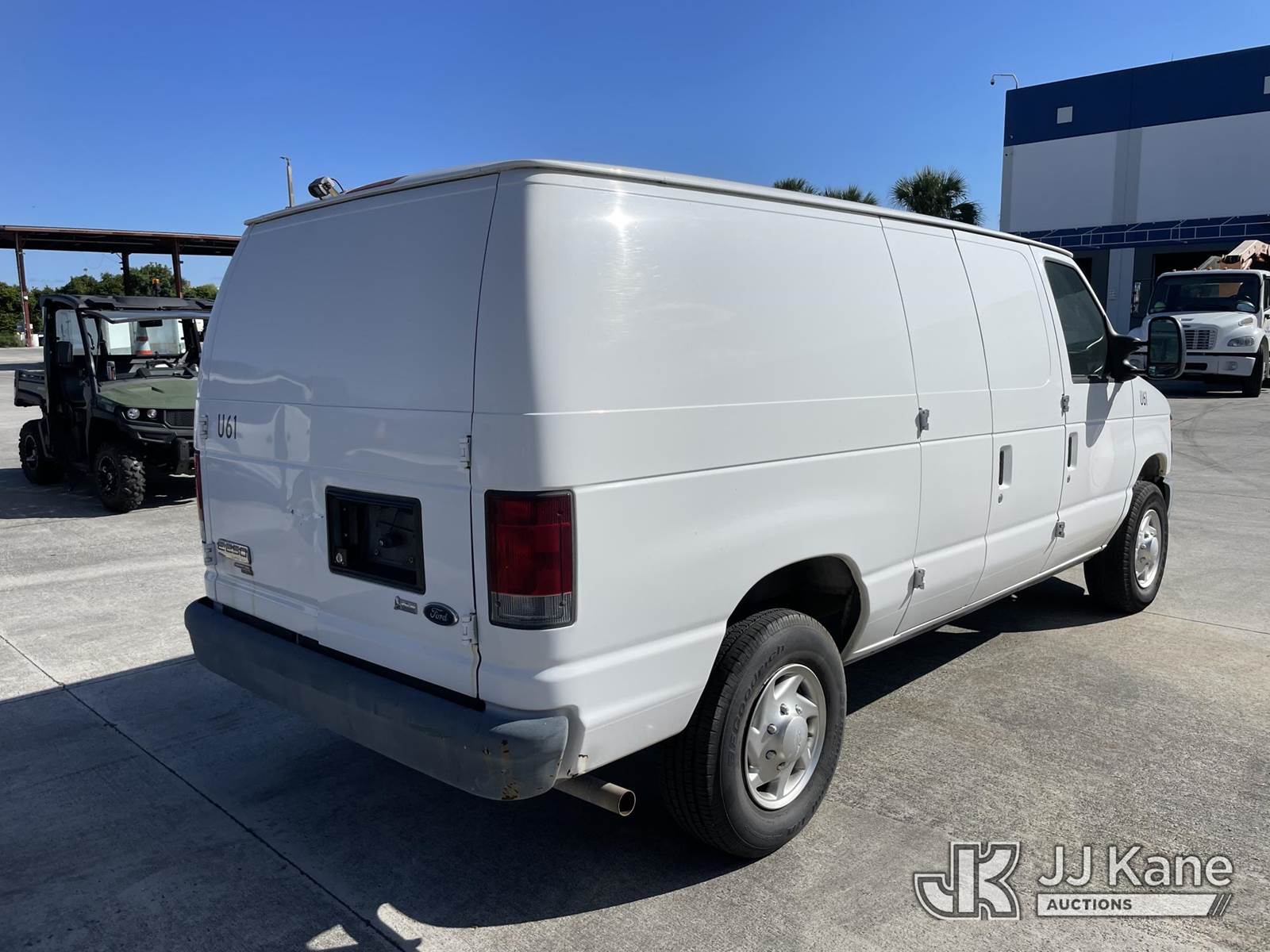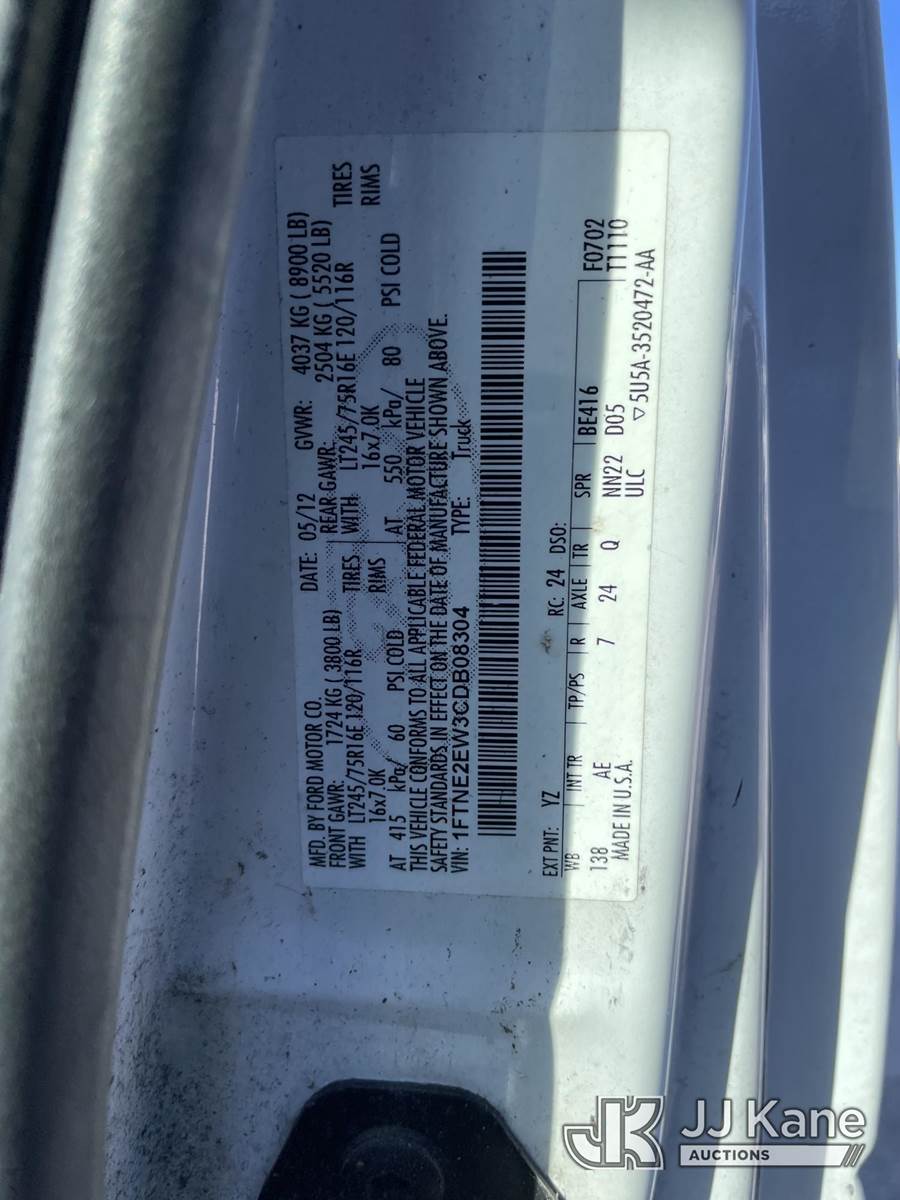 2012 Ford E250 Cargo Van, 8-cyl gas, Auto, A/C, (75,048 miles) (Runs & Moves) (Jump To Start, Body Damage) This is a Titled Item NOTE: This unit is being sold AS IS/WHERE IS via Timed Auction and is located in Riviera Beach, FL. For pre-sale questions or to schedule an inspection, please call Gregg Martini @ 561-519-5775. Removals require 24-hr Notice by Appointment Only, Buyer/Hauler must present copy of Paid-in-Full JJ Kane Release Form upon arrival. Purchaser acknowledges ALL lots must be removed within 10 business days of Auction, or a towing & storage fee may be incurred. (Buyer is responsible for removal. Assistance by consignor or JJ Kane Auctioneers is not assured.)