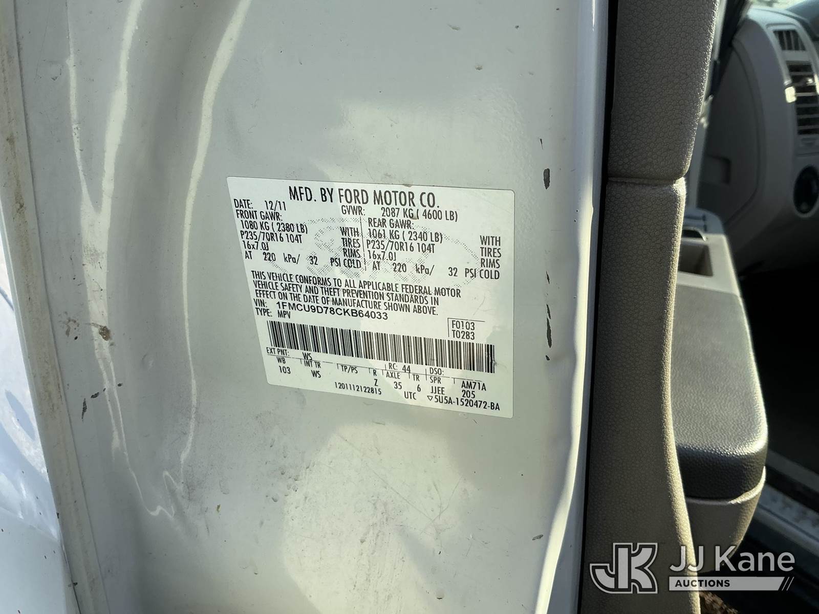 2012 Ford Escape 4x4 4-Door Sport Utility Vehicle, 4-cyl gas, Auto, A/C, (189,432 miles) (Runs & Moves, Check Engine Light On) This is a Titled Item NOTE: This unit is being sold AS IS/WHERE IS via Timed Auction and is located in Plymouth Meeting, PA. Inspection & preview days for this unit are the 2 business days prior to the first day of items closing for this auction, item is located at 1402 Conshohocken Rd Plymouth Meeting, PA 19462 and hours of operations are 8a-4p. For pre-sale questions, please contact Bruce Thomas @ (267) 887-0392 or bruce.thomas.jr@jjkane.com. (Buyer is responsible for removal. Assistance by consignor or JJ Kane Auctions is not assured.)