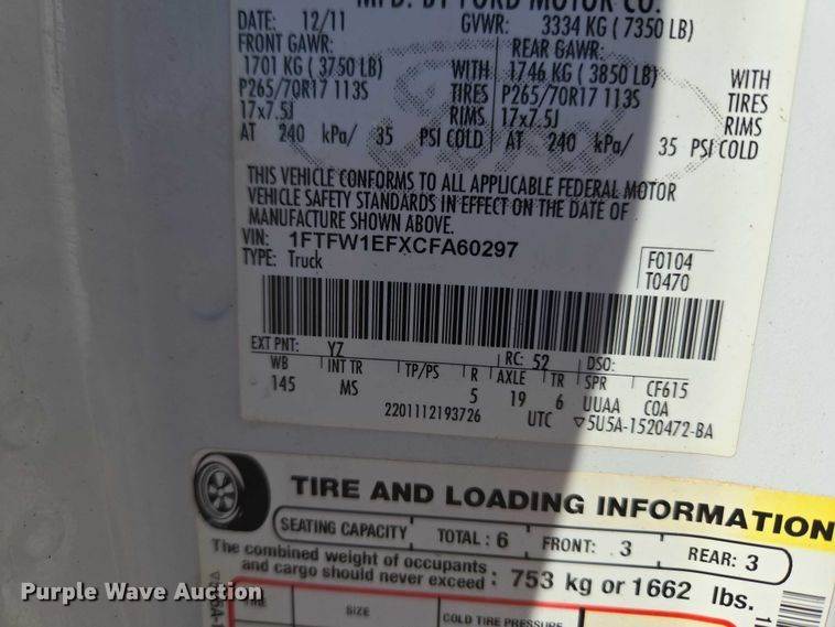 VIN: 1FTFW1EFXCFA60297