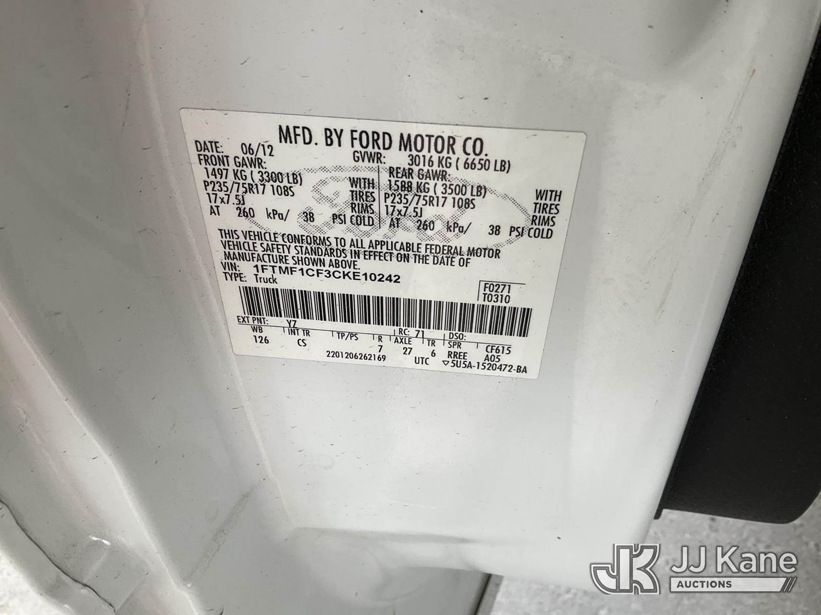 2012 Ford F-150 Pickup Truck, 5.0L V8 OHV 16V RWD, GAS, 6-Speed Automatic, A/C, with Tow package, (142,778 miles) (Runs & Moves) This is a Titled Item NOTE: This unit is being sold AS IS/WHERE IS via Timed Auction and is located in Jurupa Valley, CA. Inspection & preview days for this unit are the 2 business days prior to the first day of items closing for this auction, item is located at 4510 Muth Way Jurupa Valley, CA 92509 and hours of operations are 8a-4p. For pre-sale questions, please contact please contact Office Staff @ (310) 353-7140. Dealer License Number 45696. (Buyer is responsible for removal. Assistance by consignor or JJ Kane Auctions is not assured.)