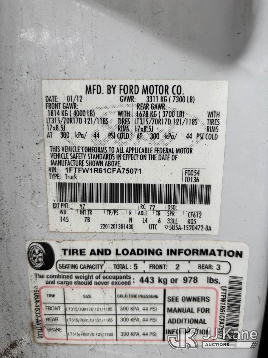 2012 Ford F-150 RAPTOR Crew-Cab Pickup Truck, 8-cyl gas, Auto, A/C, (187,213 miles) (Runs & Moves) (Traction Control Light On, Body Damage, Drivers Door Won't Open From Outside Handle , Passenger Side Door Won't Open) This is a Titled Item NOTE: This unit is being sold AS IS/WHERE IS via Timed Auction and is located in Kahului, HI. For pre-sale questions or to schedule an inspection please call John Larkin @ 720-390-9897. (Buyer is responsible for removal. Assistance by consignor or JJ Kane Auctions is not assured.)