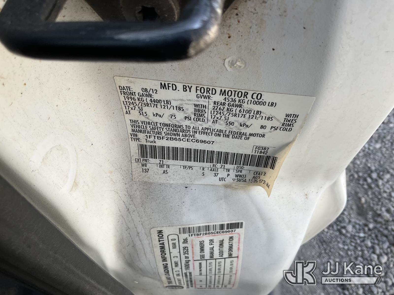 2012 Ford F-250 SD 4x4 Pickup Truck, s/n 1FTBF2B65CEC69607, 8-cyl, LPG, Auto, A/C, with Tow Package, Lift Gate, (61,937 miles) (Not Running, Condition Unknown) (Propane Tank Mounted, Body Damage, Tire Damage, Must Be Towed) (Bidding Restricted to Licensed Vehicle Dealers Only), This is a Titled Item NOTE: This unit is being sold AS IS/WHERE IS via Timed Auction and is located in Jurupa Valley, CA. Inspection & preview days for this unit are the 2 business days prior to the first day of items closing for this auction, item is located at 4510 Muth Way Jurupa Valley, CA 92509 and hours of operations are 8a-4p. For pre-sale questions, please contact please contact Office Staff @ (310) 353-7140. Dealer License Number 45696. (Buyer is responsible for removal. Assistance by consignor or JJ Kane Auctions is not assured.)