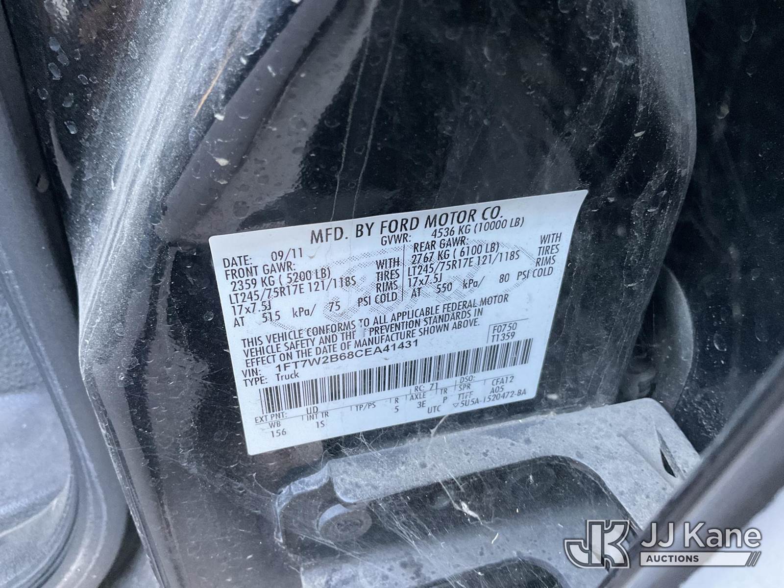 2012 Ford F-250 SD Crew-Cab Pickup Truck, s/n 1FT7W2B68CEA41431, 8-cyl gas, 6-Speed Automatic, 4wd, A/C, with Tow package, camper Shell, (98,538 miles) (Runs & Moves) This is a Titled Item NOTE: This unit is being sold AS IS/WHERE IS via Timed Auction and is located in Jurupa Valley, CA. Inspection & preview days for this unit are the 2 business days prior to the first day of items closing for this auction, item is located at 4510 Muth Way Jurupa Valley, CA 92509 and hours of operations are 8a-4p. For pre-sale questions, please contact please contact Office Staff @ (310) 353-7140. Dealer License Number 45696. (Buyer is responsible for removal. Assistance by consignor or JJ Kane Auctions is not assured.)
