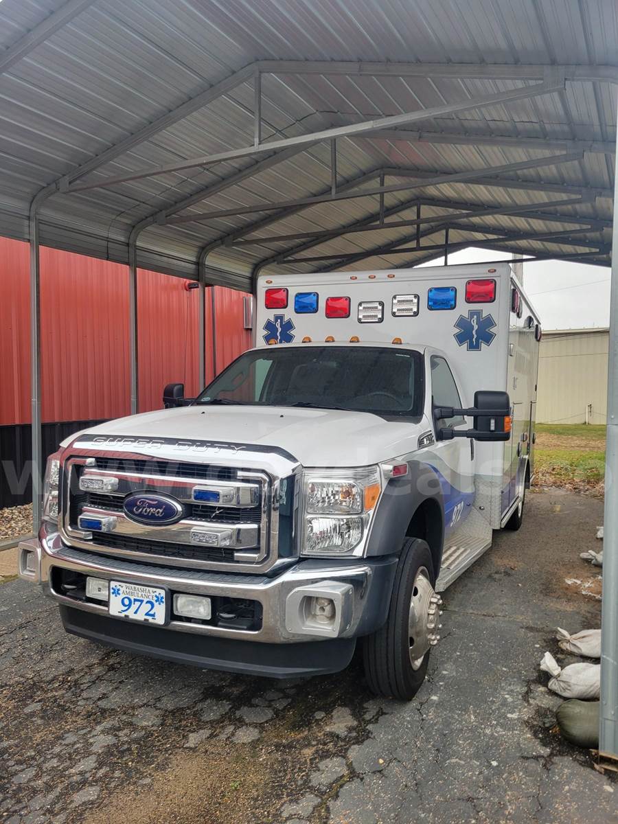 2012 F-450 SD Ambulance Rescue Vehicle, 6.7L V8 OHV 16V DIESEL, 4 Wheel Drive. Starts, runs great, and operates as it should. Selling due to replacement plan with new ambulance. Well-maintained at regular intervals while in service. Current mileage: 70,226.6 No check engine lights. No fluid leaks Dimensions: Truck is 108" wide with mirrors Truck is 279" long front to back Total Height is 110" Box width is 96" Front inner and outer tie rods were replaced and alignment completed February 2025. EGR valve replaced February 2025. Suspension was replaced with liquid Spring system in July 2023. New tires installed February 2023. Mileage at time of replacement was 61,306. Includes the mounting plate and wiring for Stryker Powerload Cot System (see pictures). Rear door latch will need some lubrication/maintenance.