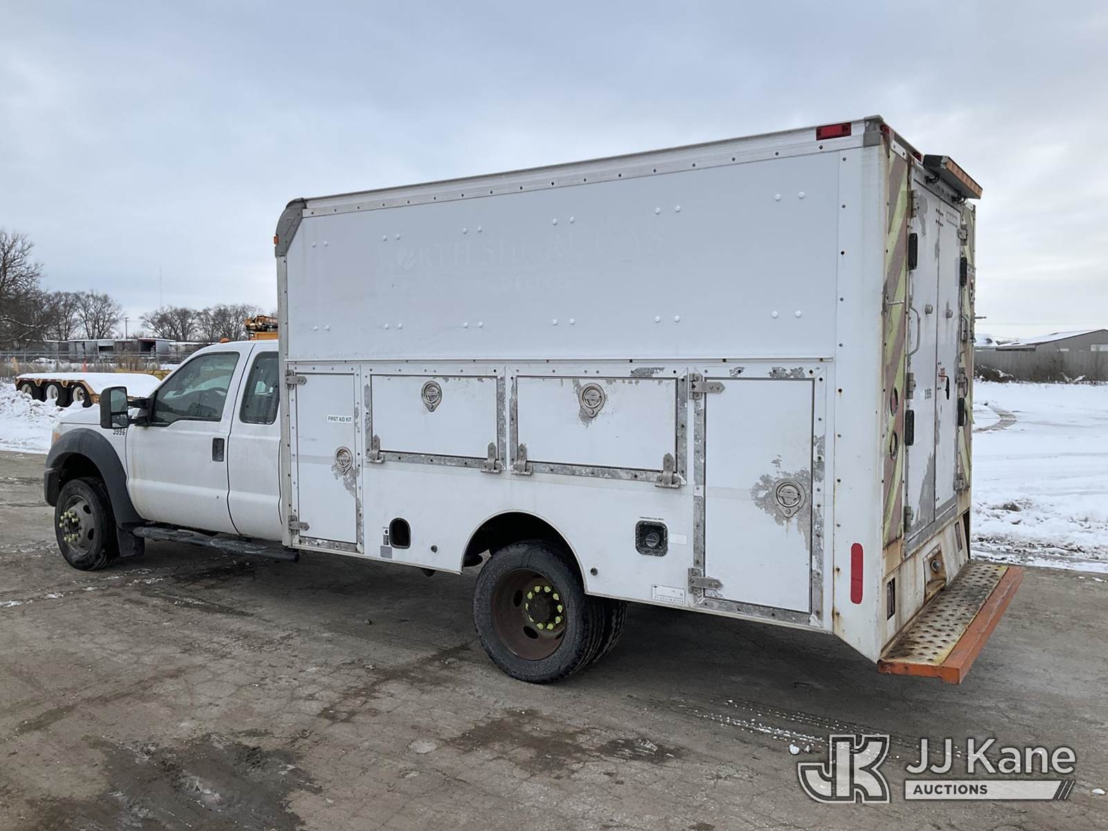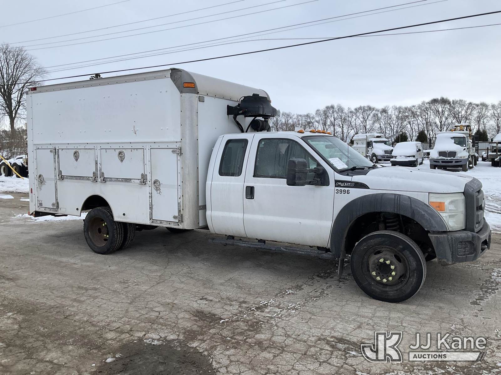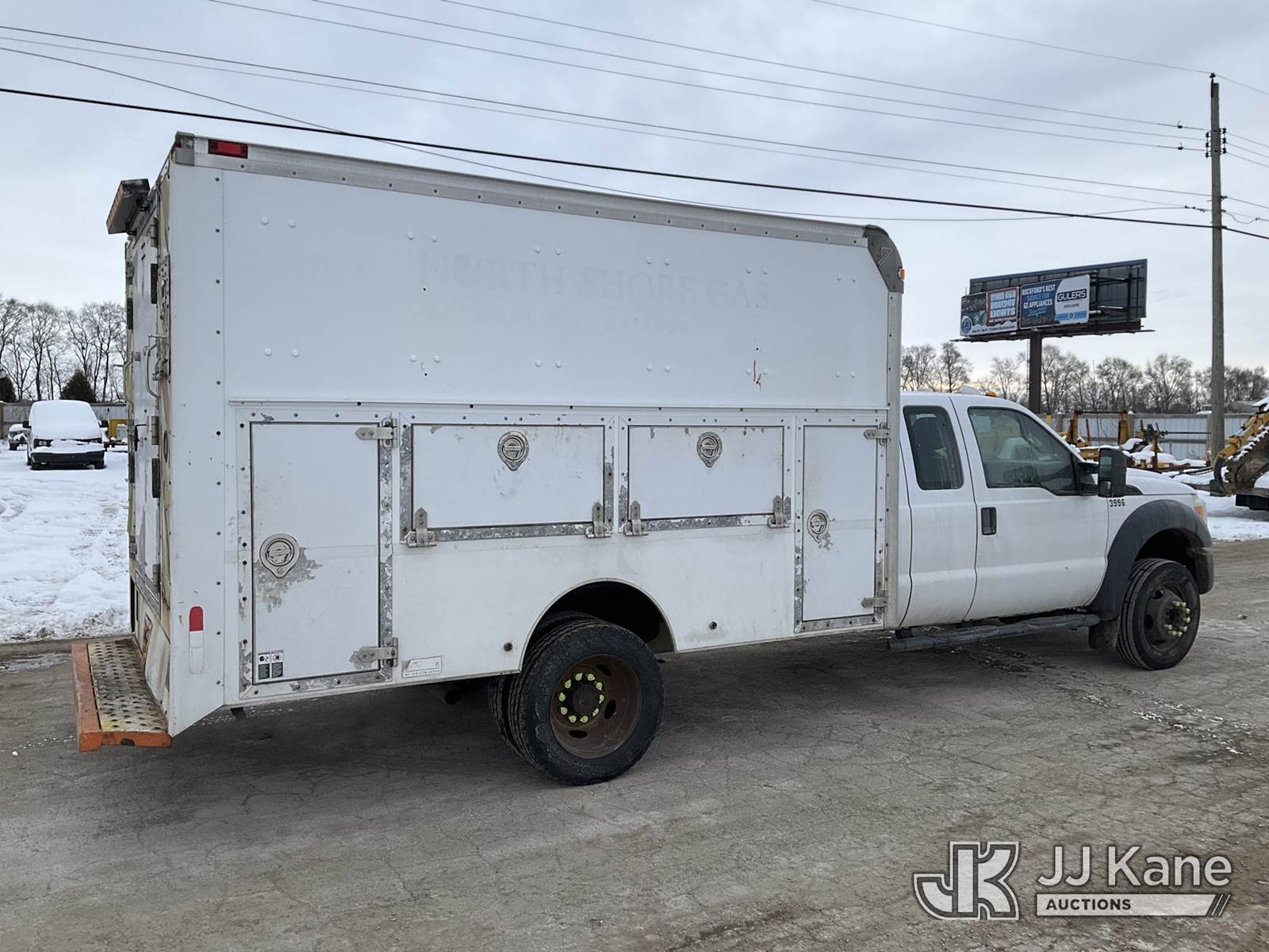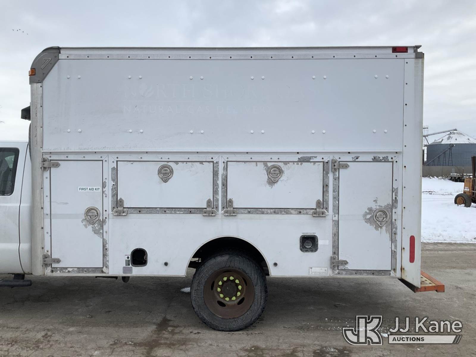 2012 Ford F-450 SD Extended-Cab Enclosed Service Truck, 10-cyl gas, Auto, A/C, with 12ft body, Boss underbody air compressor, (127,713 miles) (Runs & Moves) (Power Steering Noisy, Unable to Operate Air Compressor-Condition Unknown, Rust Damage) (Reads 16,547 hours) This is a Titled Item NOTE: This unit is being sold AS IS/WHERE IS via Timed Auction and is located in South Beloit, IL. Inspection & preview days for this unit are the 2 business days prior to the first day of items closing for this auction, item is located at 14354 Dearborn Ave South Beloit, IL and hours of operations are 8a-4p. For pre-sale questions, please contact Derek Eklund at (608) 904-0618 or (derek.eklund@jjkane.com). (Buyer is responsible for removal. Assistance by consignor or JJ Kane Auctioneers is not assured.)