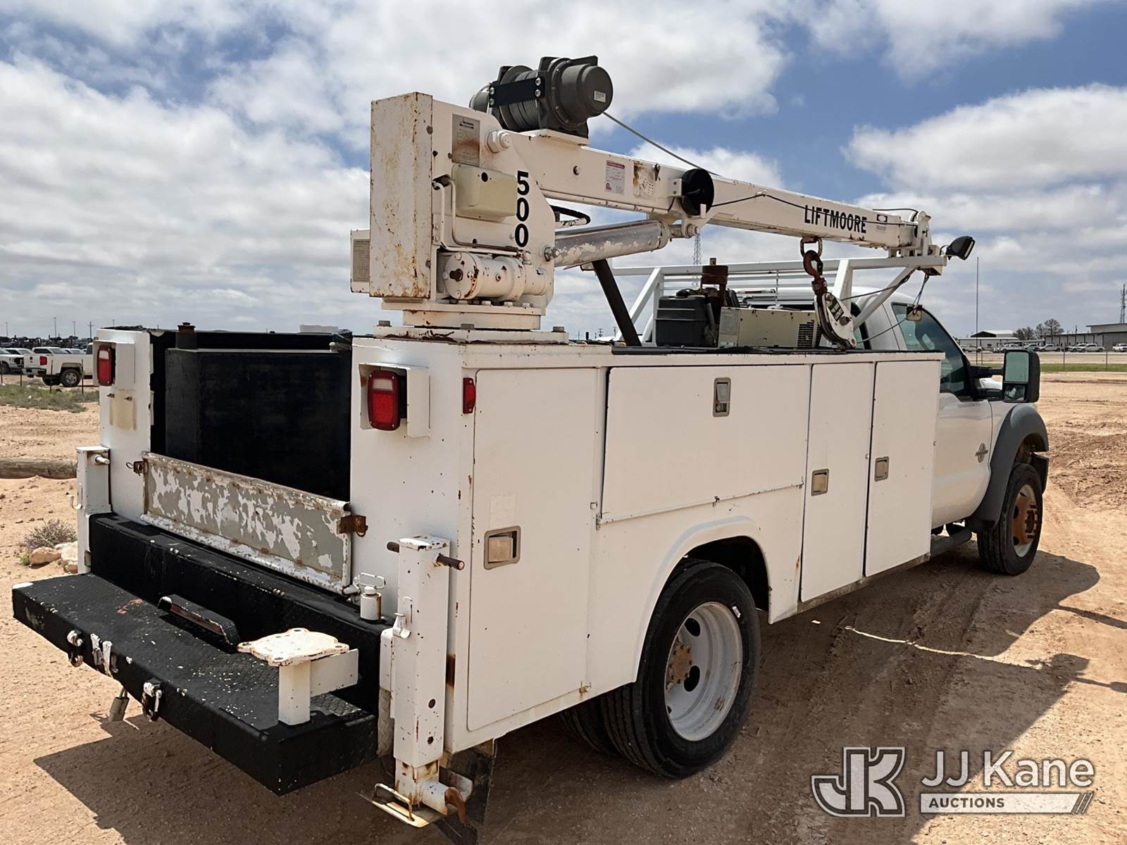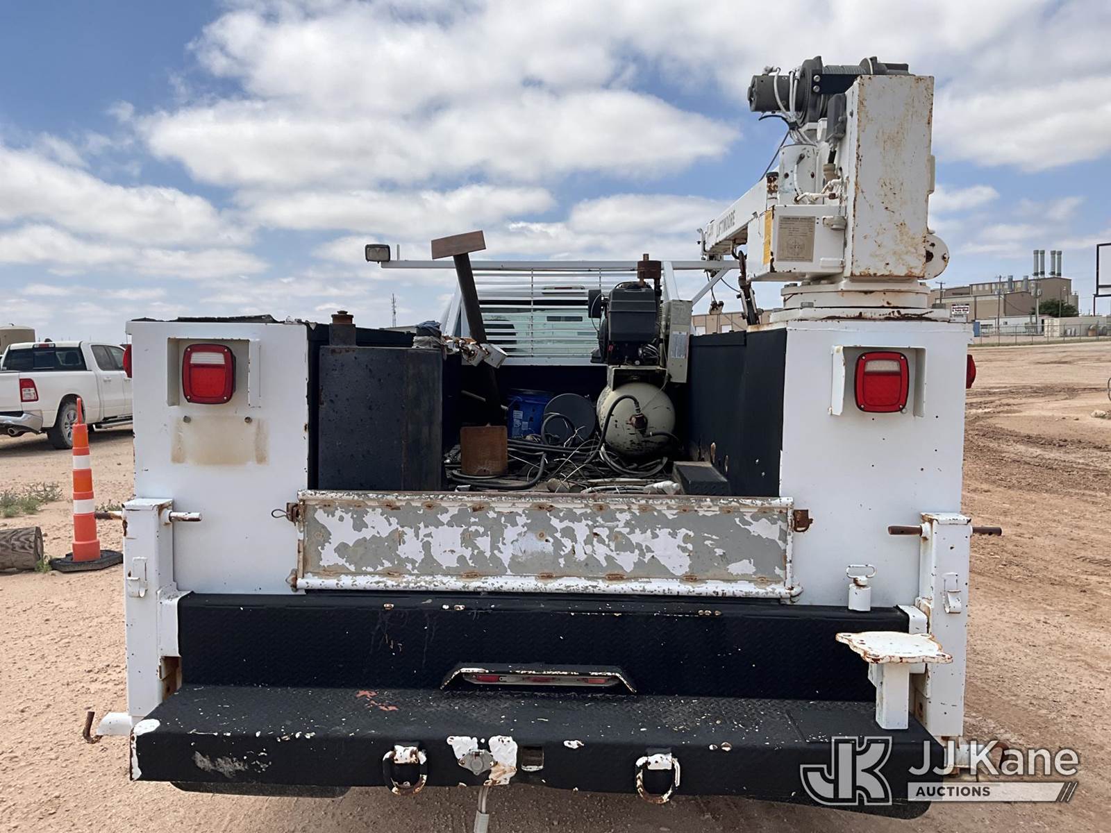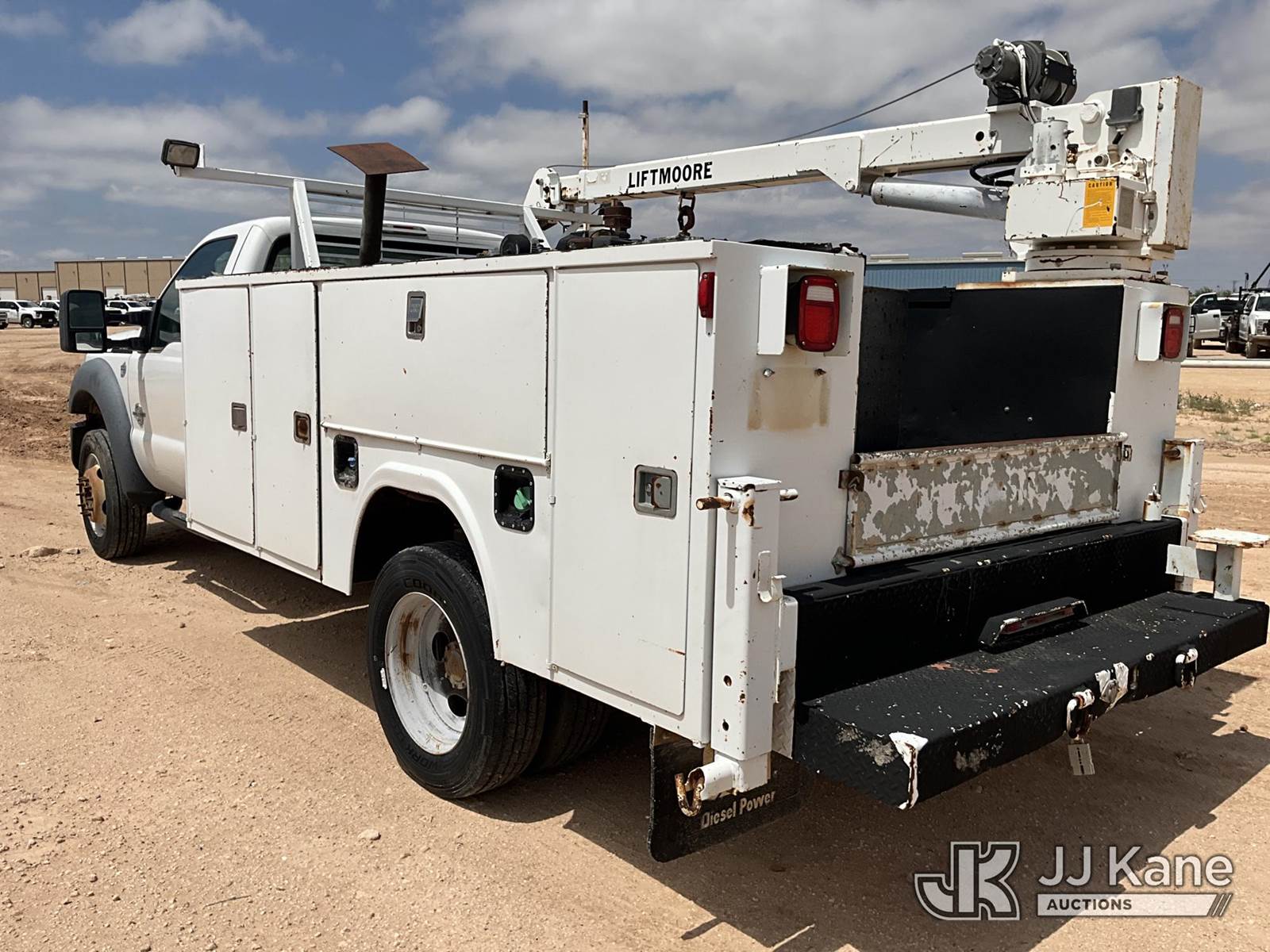 2012 Ford F-450 SD Extended-Cab Mechanics Service Truck, 6.7L RWD, DIESEL, Auto, A/C, with Liftmoore service crane, Ingersoll Rand air compressor, headache rack, (112,473 miles) (Runs & Moves) (Jump To Start, Paint Damage, Air Compressor & Service Crane Condition Unknown ) This is a Titled Item NOTE: This unit is being sold AS IS/WHERE IS via Timed Auction and is located in Midland, TX. For pre-sale questions please call EJ Brown at (915) 341-2565. (Buyer is responsible for removal. Assistance by consignor or JJ Kane Auctions is not assured.)