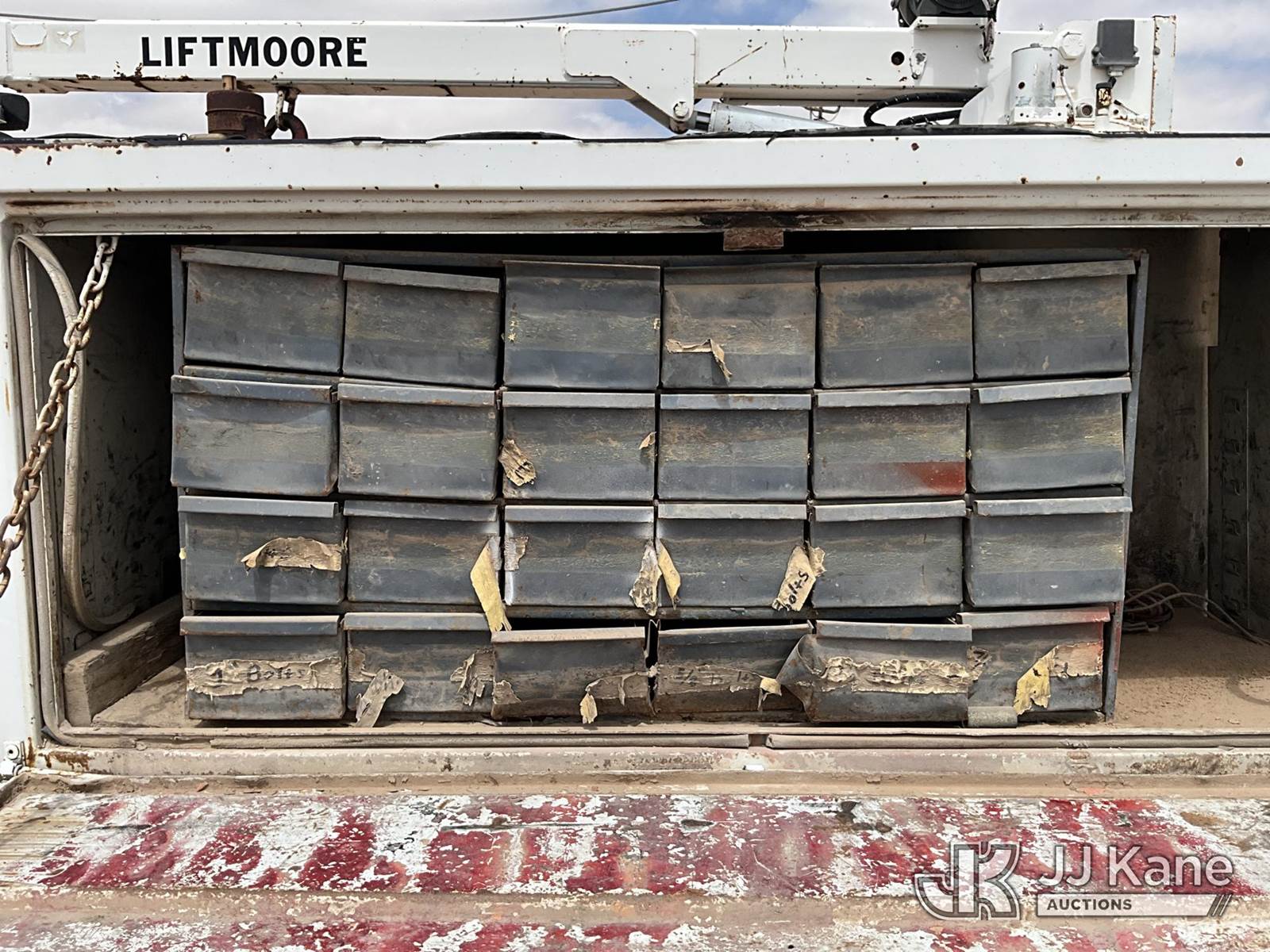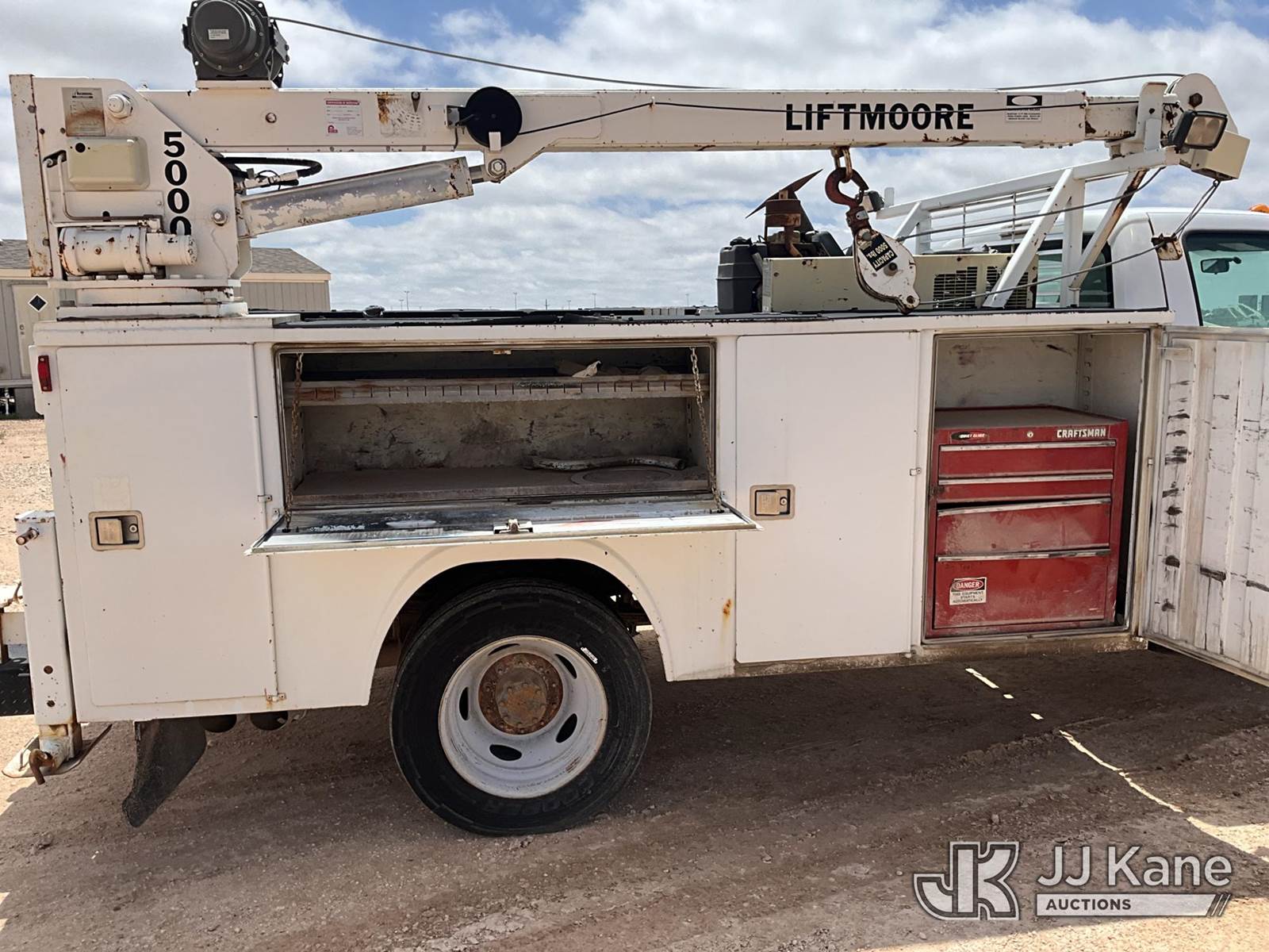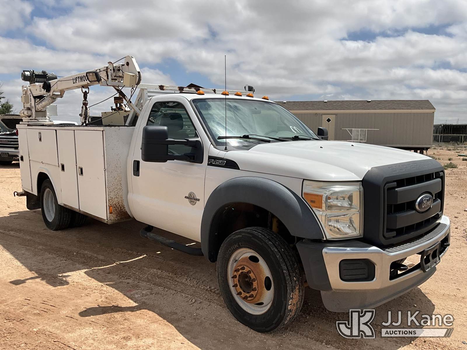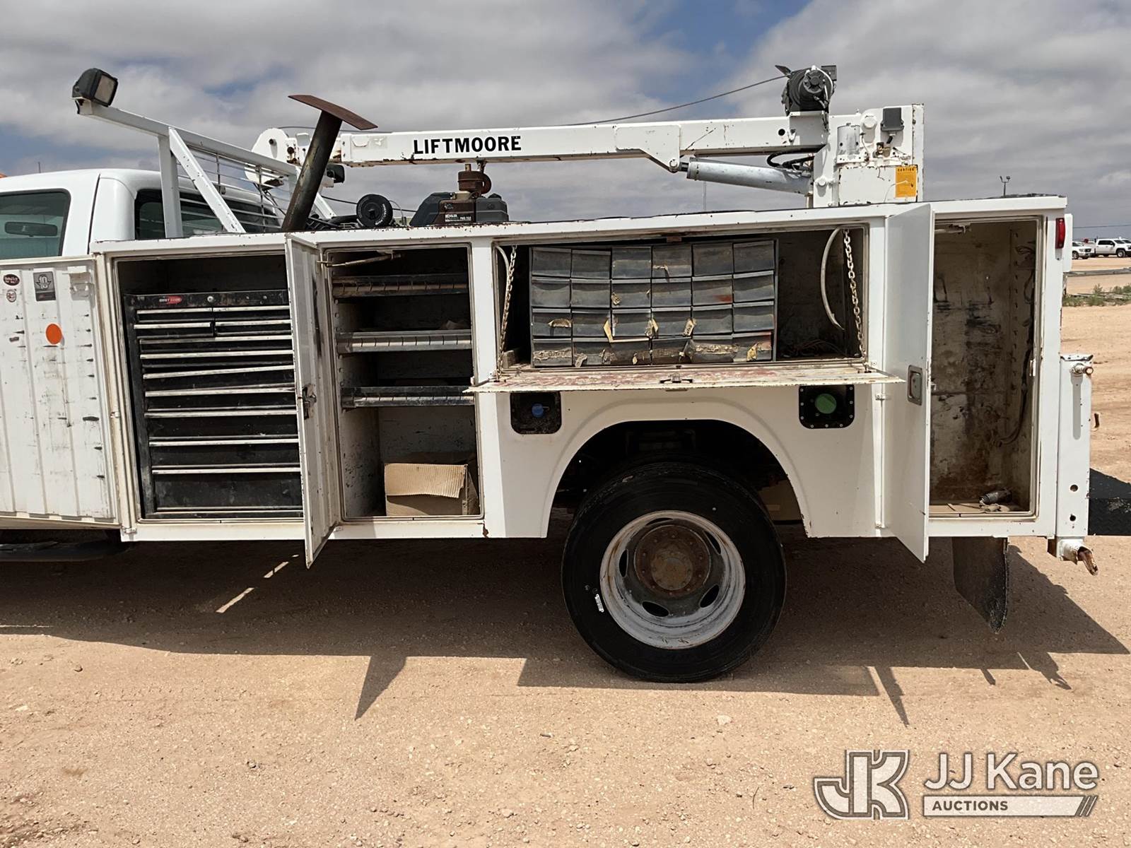 2012 Ford F-450 SD Extended-Cab Mechanics Service Truck, 6.7L RWD, DIESEL, Auto, A/C, with Liftmoore service crane, Ingersoll Rand air compressor, headache rack, (112,473 miles) (Runs & Moves) (Jump To Start, Paint Damage, Air Compressor & Service Crane Condition Unknown ) This is a Titled Item NOTE: This unit is being sold AS IS/WHERE IS via Timed Auction and is located in Midland, TX. For pre-sale questions please call EJ Brown at (915) 341-2565. (Buyer is responsible for removal. Assistance by consignor or JJ Kane Auctions is not assured.)