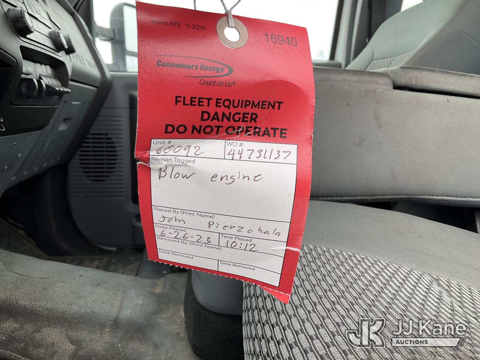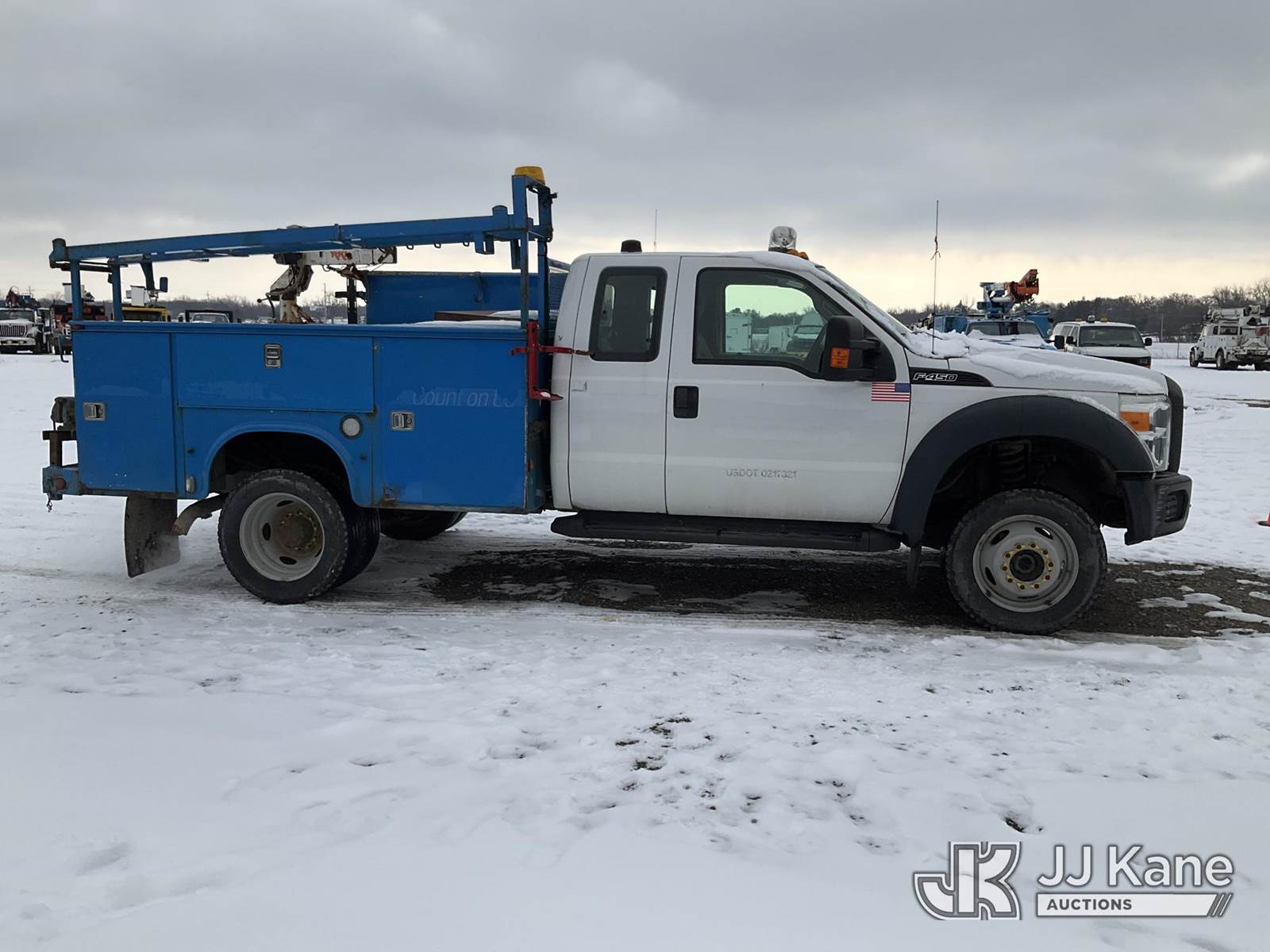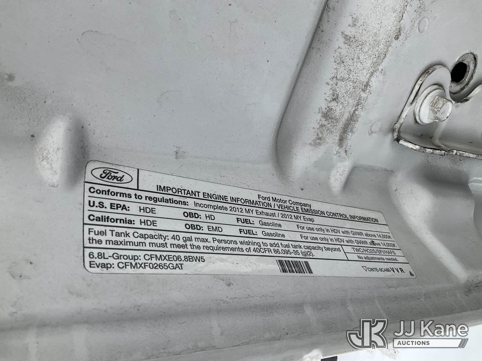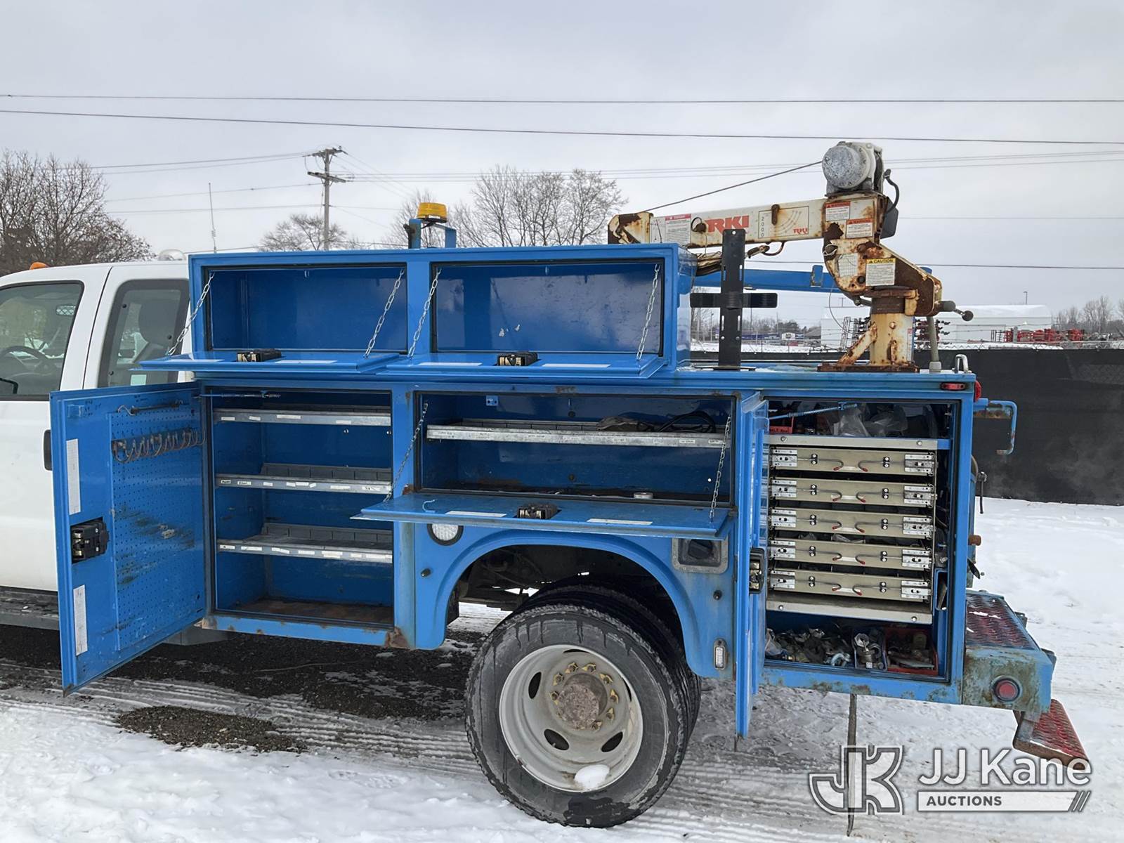 2012 Ford F-450 SD SuperCab DRW 4WD Extended-Cab Mechanics Service Truck, 6.8L V10 SOHC 30V, Gas Auto, A/C, with material handling crane (condition unknown), inverter, (188,066 miles) (Runs & Moves) (Engine Noise, Jump to Start, Stalled During Auction Inspection) (Red Tagged: Blown Engine) (Reads 13,975 hours) This is a Titled Item NOTE: This unit is being sold AS IS/WHERE IS via Timed Auction and is located in Charlotte, MI. Inspection & preview days for this unit are the 2 business days prior to the first day of items closing for this auction, item is located at 750 Island Hwy Charlotte, MI 48813 and hours of operations are 8a-4p. For pre-sale questions, please contact Corey Cook at (517) 983-0796 or corey.cook@jjkane.com (Buyer is responsible for removal. Assistance by consignor or JJ Kane Auctions is not assured.)