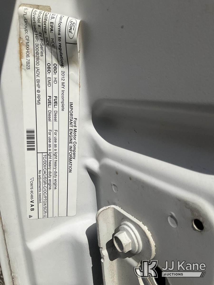 2012 Ford F-550 Dump Truck, 6.7L Diesel Auto, 4wd, A/C, (70,006 miles) (Runs, Moves & Dump Operates) (Reads 4,836 hours) This is a Titled Item NOTE: This unit is being sold AS IS/WHERE IS via Timed Auction and is located in South Beloit, IL. Inspection & preview days for this unit are the 2 business days prior to the first day of items closing for this auction, item is located at 14354 Dearborn Ave South Beloit, IL and hours of operations are 8a-4p. For pre-sale questions, please contact Derek Eklund at (608) 904-0618 or (derek.eklund@jjkane.com). (Buyer is responsible for removal. Assistance by consignor or JJ Kane Auctions is not assured.)