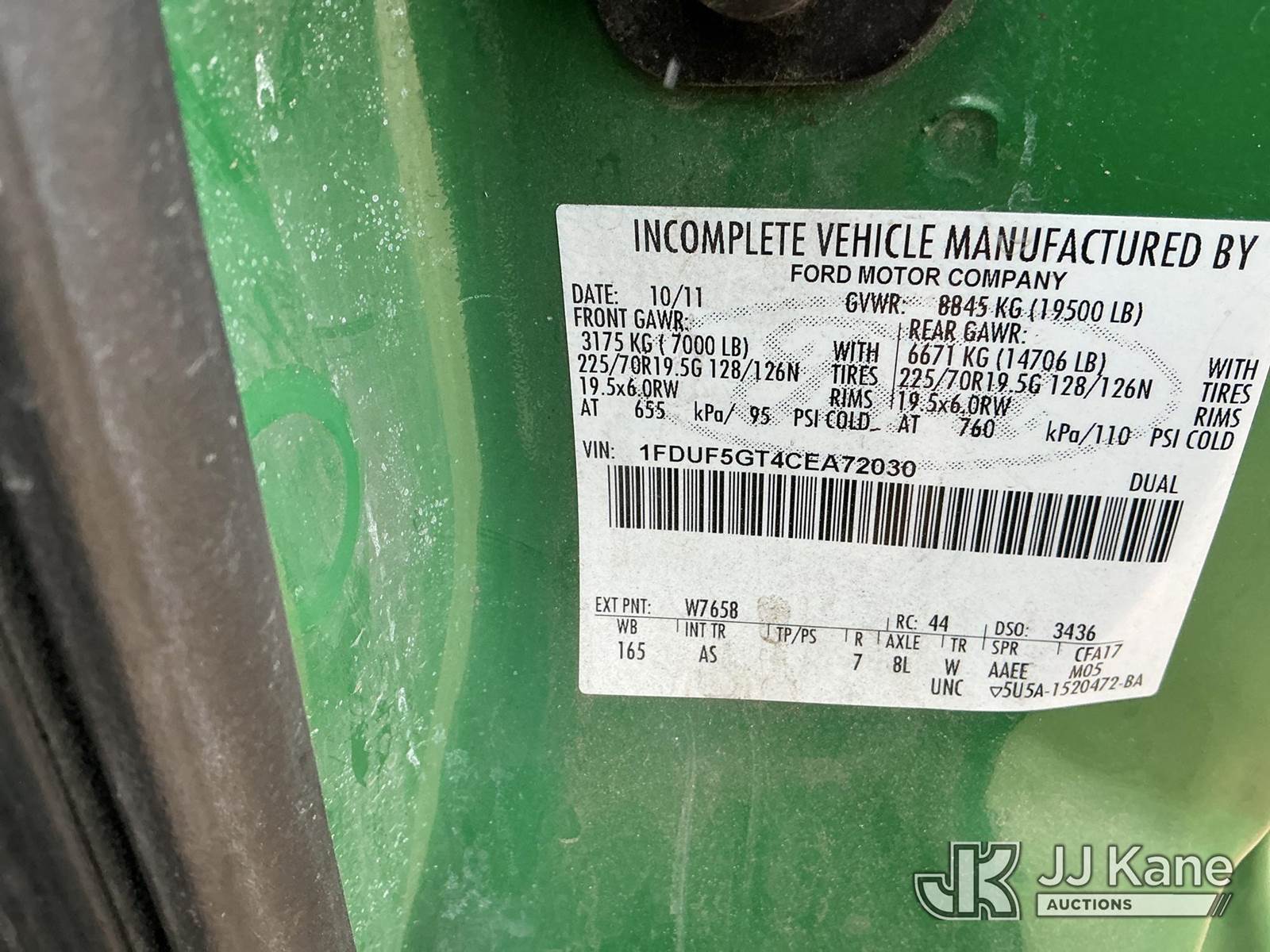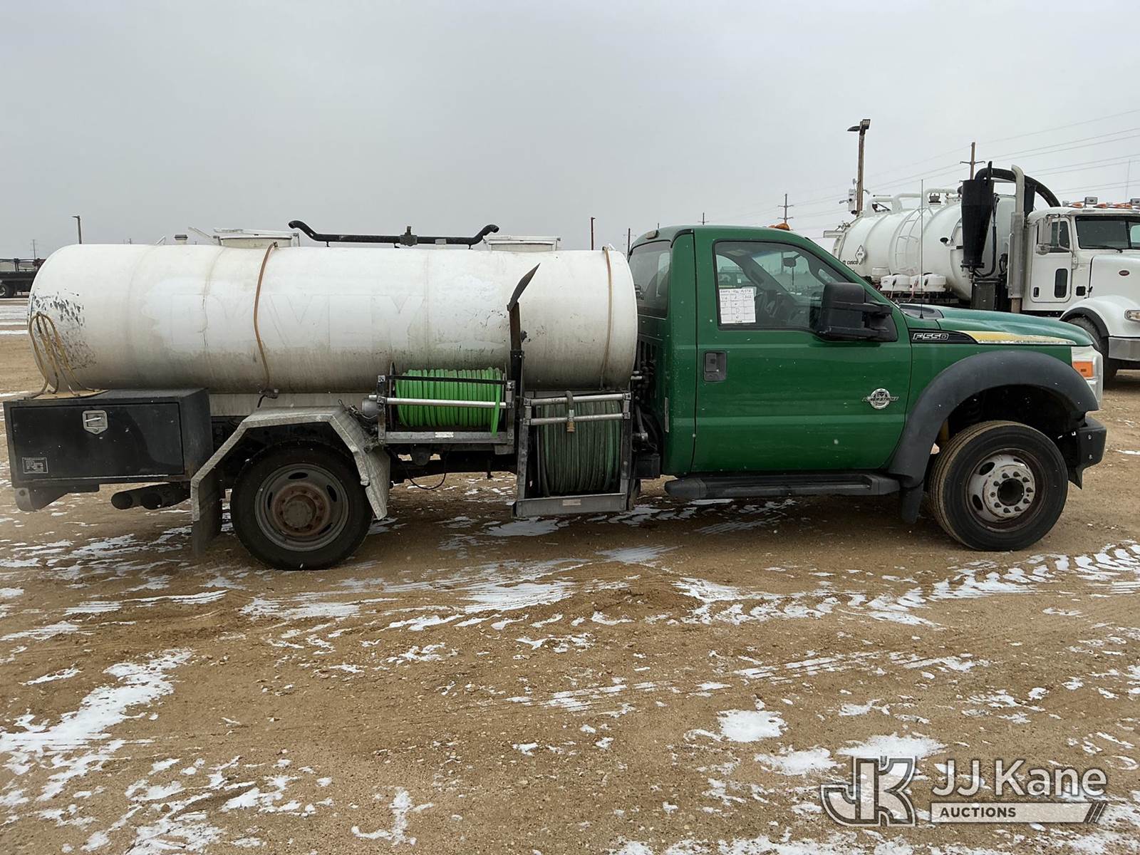 2012 Ford F-550 Tank Truck, 6.7L Diesel Auto, with 2 Hose Reels, 2 Compartment Tank, (79,860 miles) (Runs & Moves) (PTO Engages & Unknown Tank Operational Status, Check Engine Light On, No Emissions Provided, See Bidder Agreement) (Reads 13,742 hours) This is a Titled Item NOTE: This unit is being sold AS IS/WHERE IS via Timed Auction and is located in Fort Lupton, CO. Inspection & preview days for this unit are the 2 business days prior to the first day of items closing for this auction, item is located at 2105 Northland Dr Fort Lupton, CO 80621 and hours of operations are 8a-4p. For pre-sale questions, please contact Dakota Hoffman @ (720) 621-0786. Dealer License Number 47109. (Buyer is responsible for removal. Assistance by consignor or JJ Kane Auctions is not assured.)