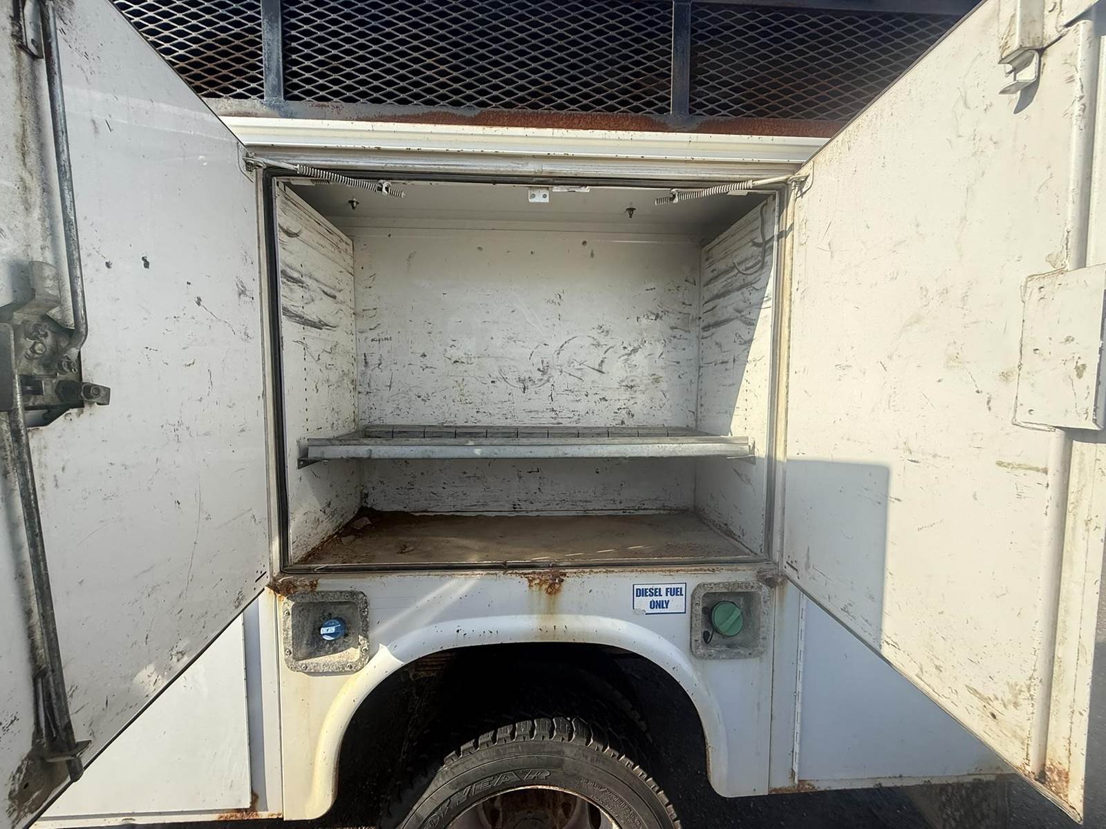 6.7L Powerstroke Turbo Diesel Engine, Automatic Transmission, 4x4, Crew Cab, Approx 9'x96" (7) Door Service Body, Fuel Tank, Hydraulic Tank, Heat/Ac, Am/Fm Radio, Cruise Control, Steering Wheel Controls, Power Windows, Power Mirrors, Heated Mirrors, Power Locks, Integrated Brake Controller, 225/70R19.5 Tires