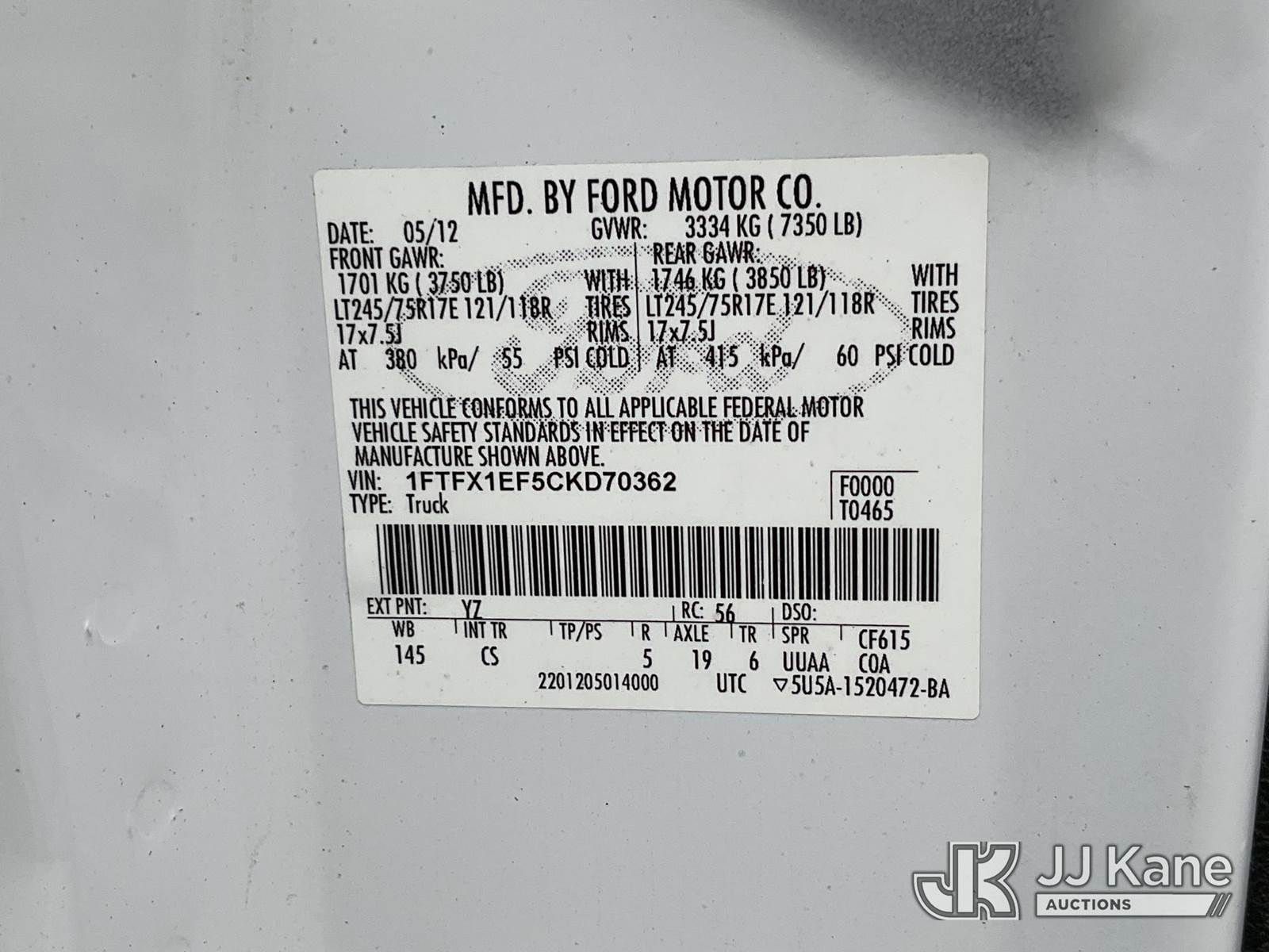 2012 Ford F150 4x4 Extended-Cab Pickup Truck, 8-cyl gas, Auto, A/C, (190,625 miles) (Runs & Moves) This is a Titled Item NOTE: This unit is being sold AS IS/WHERE IS via Timed Auction and is located in Salt Lake City, UT. Inspection & preview days for this unit are the 2 business days prior to the first day of items closing for this auction, item is located at 2353 N Redwood Rd Salt Lake City, UT 84116 and hours of operations are 8a-4p. Titles executed exactly as bidder registered. Ensure your name and/or business name and address in JJ Kane and/or ProxiBid is correct before bidding. For more information & removal arrangements please contact office staff @ (801) 519-0123. (Buyer is responsible for removal. Assistance by consignor or JJ Kane Auctioneers is not assured.)