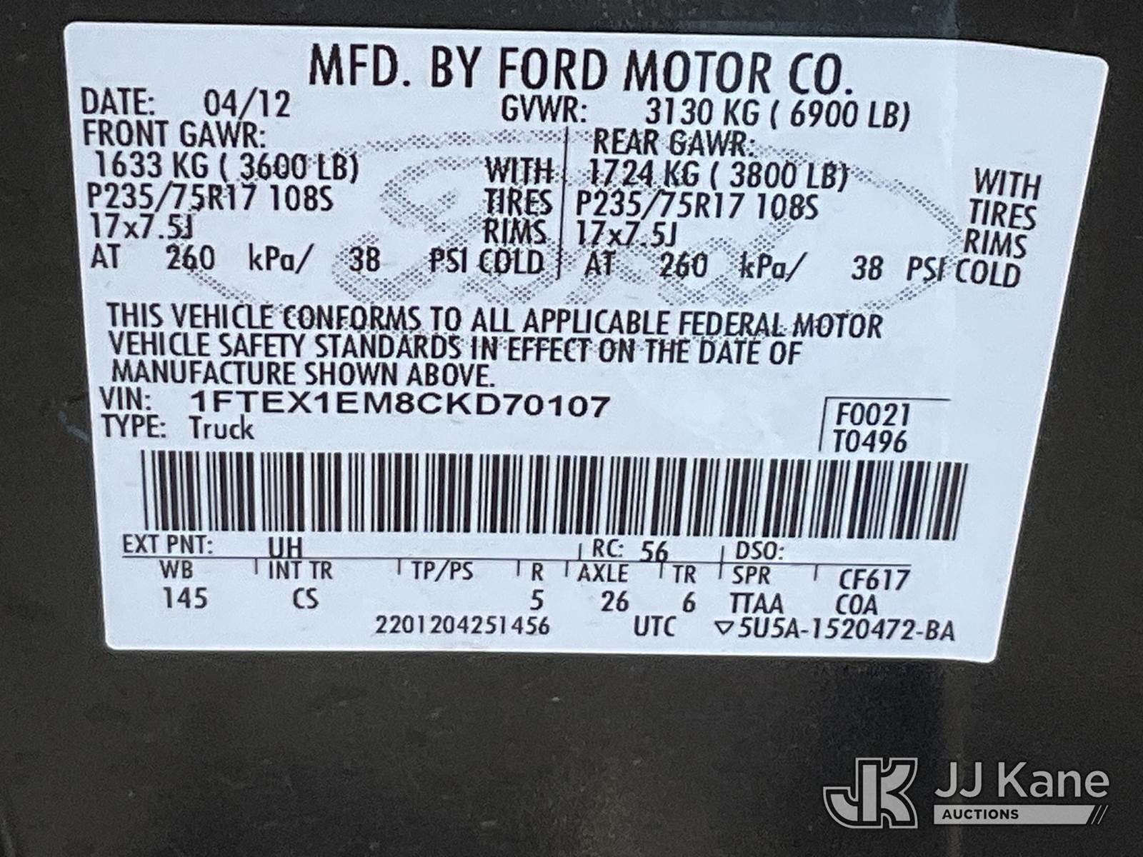 2012 Ford F150 4x4 Extended-Cab Pickup Truck, 6-cyl gas, Auto, A/C, (75,580 miles) (Runs & Moves) (Bad Paint) This is a Titled Item NOTE: This unit is being sold AS IS/WHERE IS via Timed Auction and is located in Salt Lake City, UT. Inspection & preview days for this unit are the 2 business days prior to the first day of items closing for this auction, item is located at 2353 N Redwood Rd Salt Lake City, UT 84116 and hours of operations are 8a-4p. Titles executed exactly as bidder registered. Ensure your name and/or business name and address in JJ Kane and/or ProxiBid is correct before bidding. For pre-sale questions, please contact Office Staff @ (801) 519-0123. (Buyer is responsible for removal. Assistance by consignor or JJ Kane Auctions is not assured.)