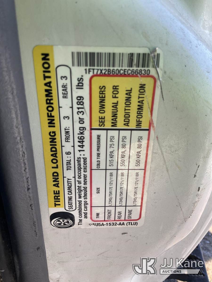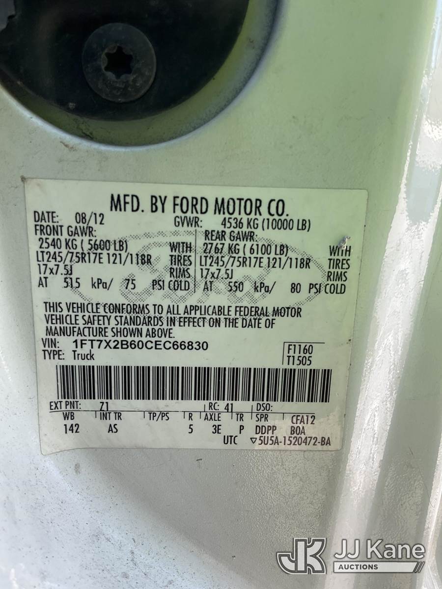 2012 Ford F250 4x4 Extended-Cab Pickup Truck, 6.2L V8 OHV 16V gas, 6-Speed Automatic, A/C, with service cap, (56,682 miles) (Runs & Moves) (Missing Rear Seats, Paint/Body/Rust Damage) (Reads 12,292 hours) This is a Titled Item NOTE: This unit is being sold AS IS/WHERE IS via Timed Auction and is located in South Beloit, IL. Inspection & preview days for this unit are the 2 business days prior to the first day of items closing for this auction, item is located at 14354 Dearborn Ave South Beloit, IL and hours of operations are 8a-4p. For pre-sale questions, please contact Derek Eklund at (608) 904-0618 or (derek.eklund@jjkane.com). (Buyer is responsible for removal. Assistance by consignor or JJ Kane Auctions is not assured.)
