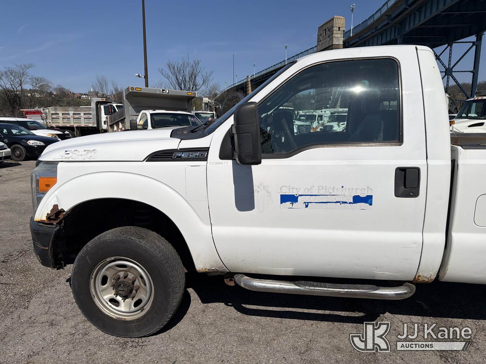 2012 Ford F350 4x4 Pickup Truck, 6.2L V8 Gas, Automatic, A/C, (149,971 miles) (Runs & Moves) (Jump To Start, Bad Battery, Check Engine Light On, Driver Seat Not Attached, Rust/Body Damage, Missing Tailgate) (Removal is by appointment only. Buyer/Transporter MUST have a PAID IN FULL RELEASE form. No on-site assistance will be provided, so please arrive fully prepared. The location cannot accommodate large rollback trucks for non-running vehicles. Smaller equipment must be used to move vehicles to an open area for loading.) This is a Titled Item NOTE: This unit is being sold AS IS/WHERE IS via Timed Auction and is located in Pittsburgh, PA. Inspection & preview days for this location are by appointment only. Please contact the City of Pittsburgh POC @ (412) 807-0274 for more details. For pre-sale questions, please contact Alaina @ (724) 562-2575 or Alaina.White@JJKane.com. (Buyer is responsible for removal. Assistance by consignor or JJ Kane Auctions is not assured.)