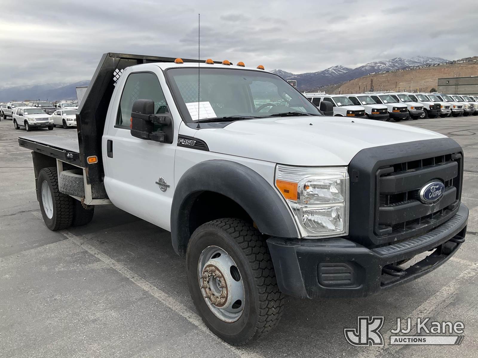 2012 Ford F450 4x4 Flatbed Truck, 6.7L diesel, Auto, A/C, with 9ft Bed, (142,238 miles) (Runs & Moves) This is a Titled Item NOTE: This unit is being sold AS IS/WHERE IS via Timed Auction and is located in Salt Lake City, UT. Inspection & preview days for this unit are the 2 business days prior to the first day of items closing for this auction, item is located at 2353 N Redwood Rd Salt Lake City, UT 84116 and hours of operations are 8a-4p. Titles executed exactly as bidder registered. Ensure your name and/or business name and address in JJ Kane and/or ProxiBid is correct before bidding. For pre-sale questions, please contact Office Staff @ (801) 519-0123. (Buyer is responsible for removal. Assistance by consignor or JJ Kane Auctions is not assured.)