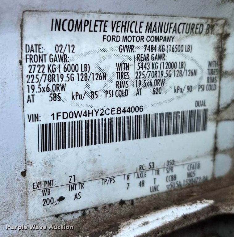 VIN: 1FD0W4HY2CEB44006