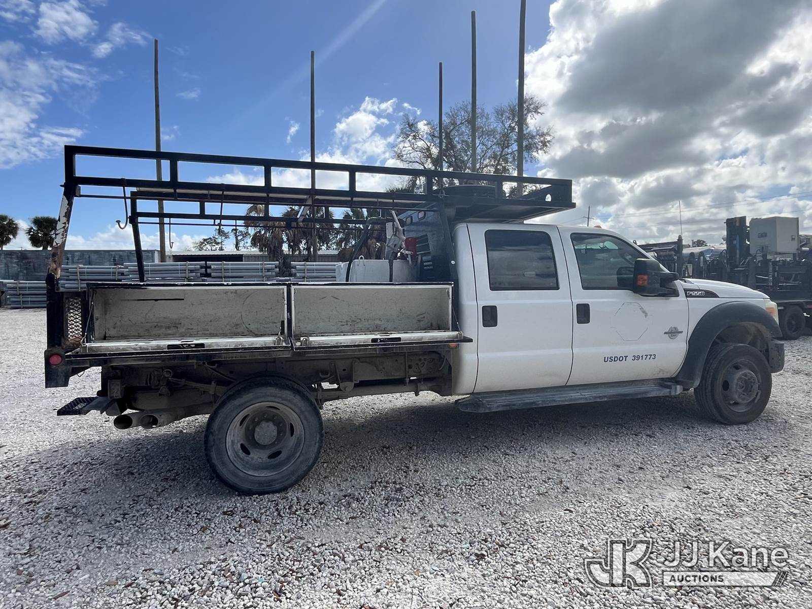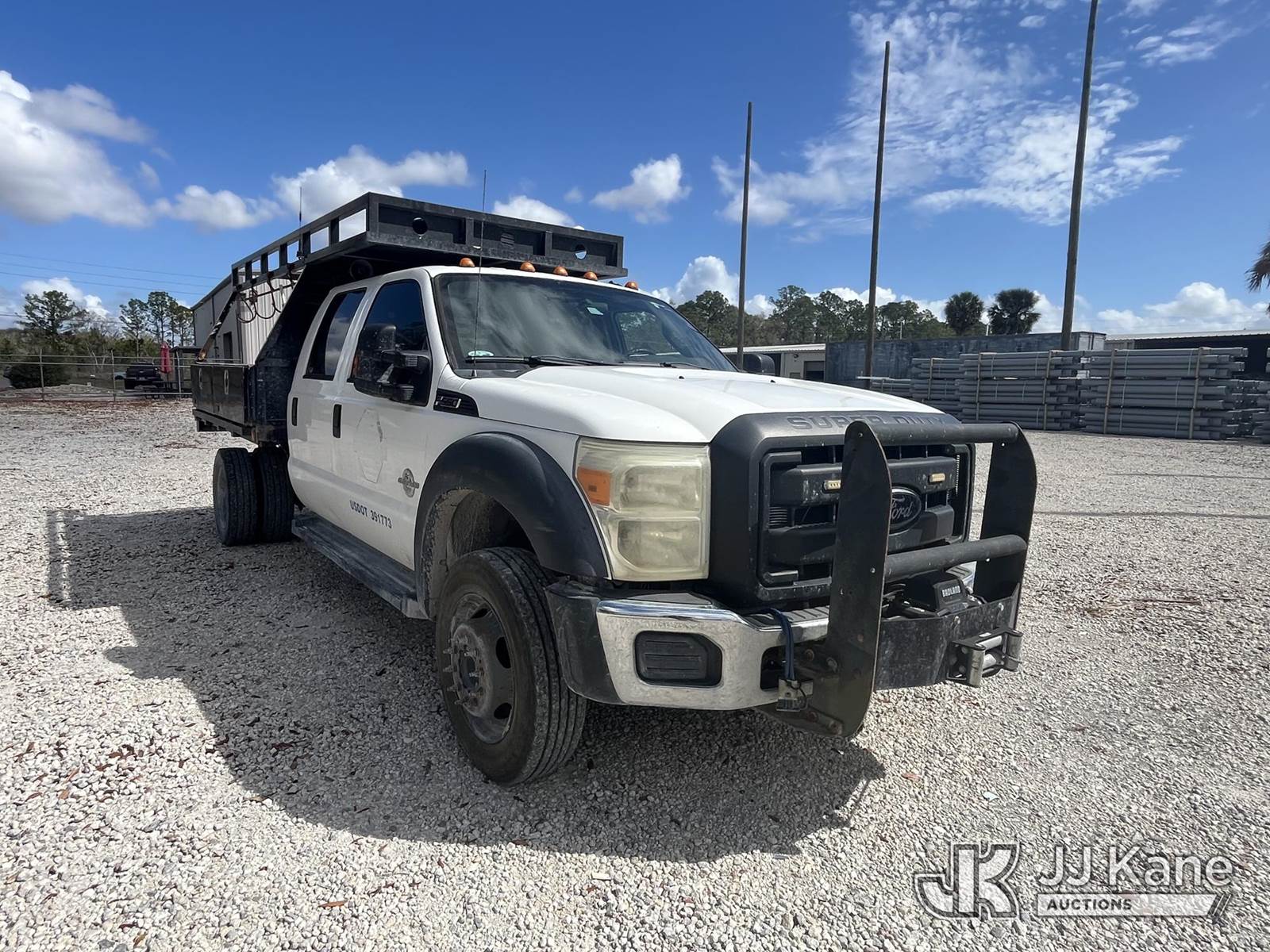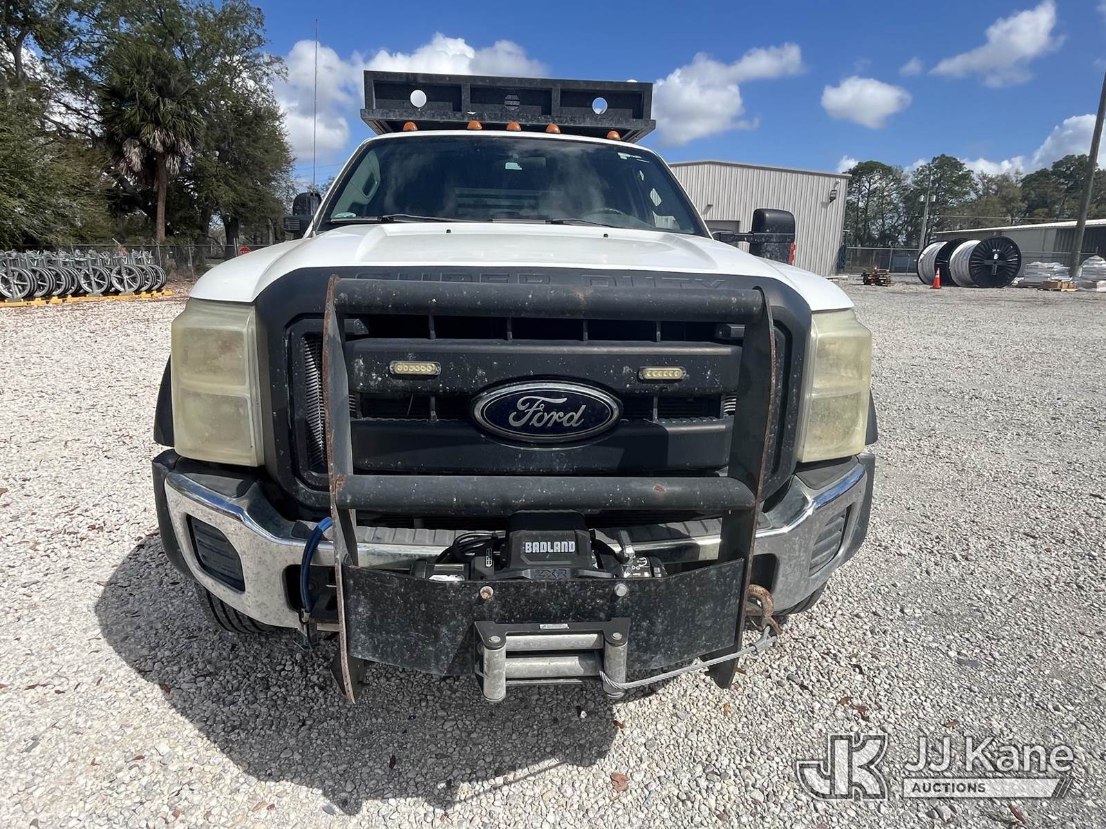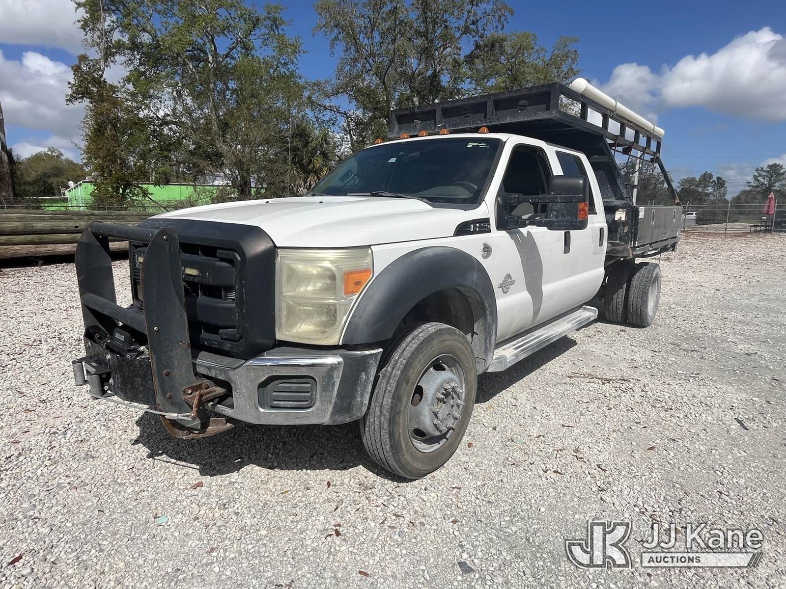 2012 Ford F550 4x4 Crew-Cab Flatbed/Service Truck, 6.7L V8 OHV 16V DIESEL Auto, A/C, with front winch, aux fuel tank w/pump, (123,455 miles) (Runs, Moves) (Jump To Start) This is a Titled Item NOTE: This unit is being sold AS IS/WHERE IS via Timed Auction and is located in Leesburg, FL. For more information & removal arrangements please contact Dylan Evans @ 205-936-1094. (Buyer is responsible for removal. Assistance by consignor or JJ Kane Auctions is not assured.)