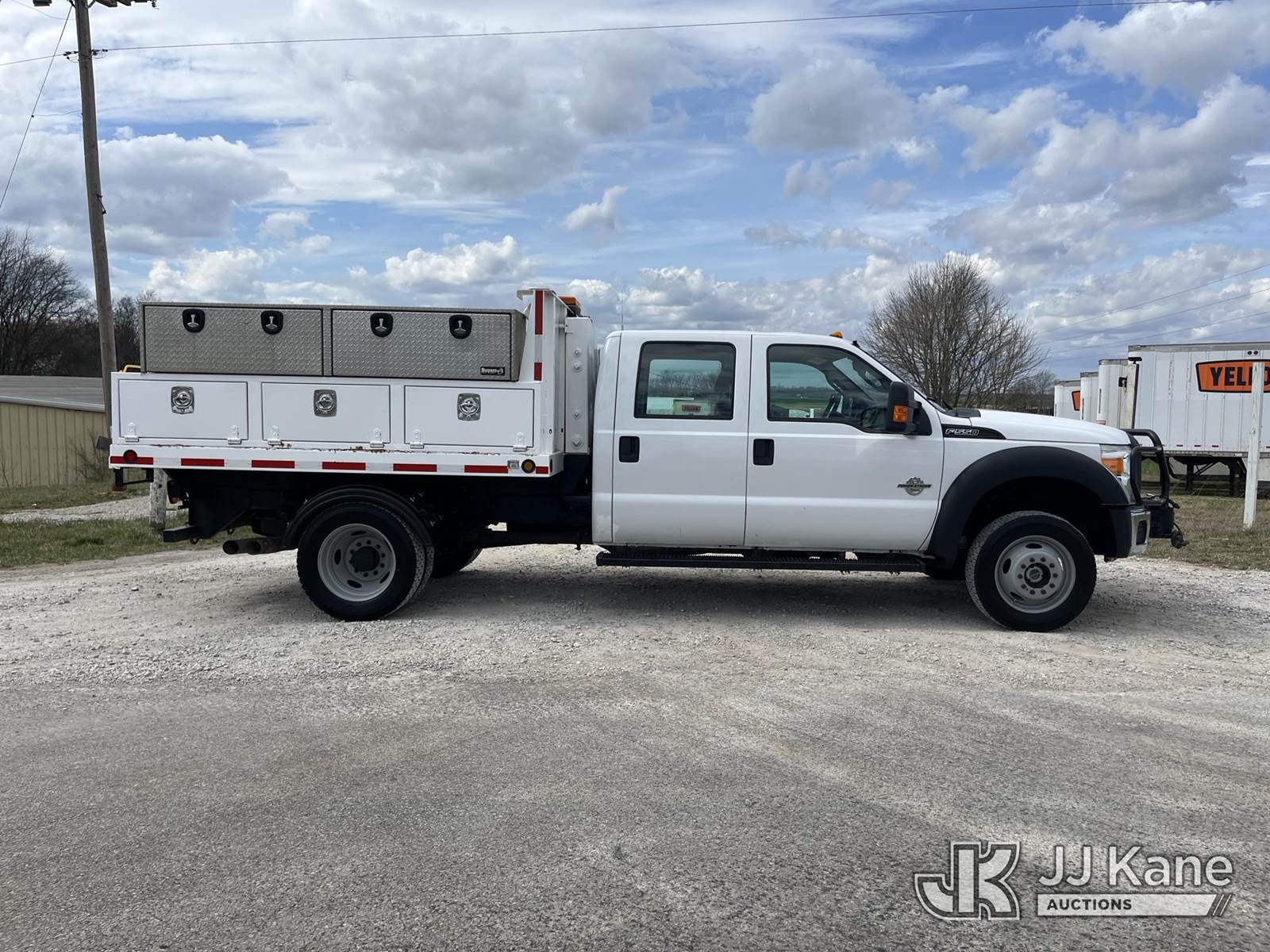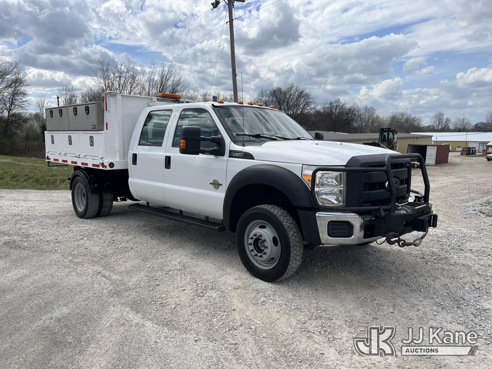 2012 Ford F550 4x4 Crew-Cab Flatbed/Service Truck, 6.7L diesel, Auto, A/C, with Auxiliary Hydraulic Tank, Hydraulic Driven Front Bumper Winch, PTO, (228,008 miles) (Runs, Moves, PTO Operates) This is a Titled Item NOTE: This unit is being sold AS IS/WHERE IS via Timed Auction and is located in Pelham, TN. For more information & removal arrangements please contact Dalton Childers @ 629-395-3117. (Buyer is responsible for removal. Assistance by consignor or JJ Kane Auctions is not assured.)