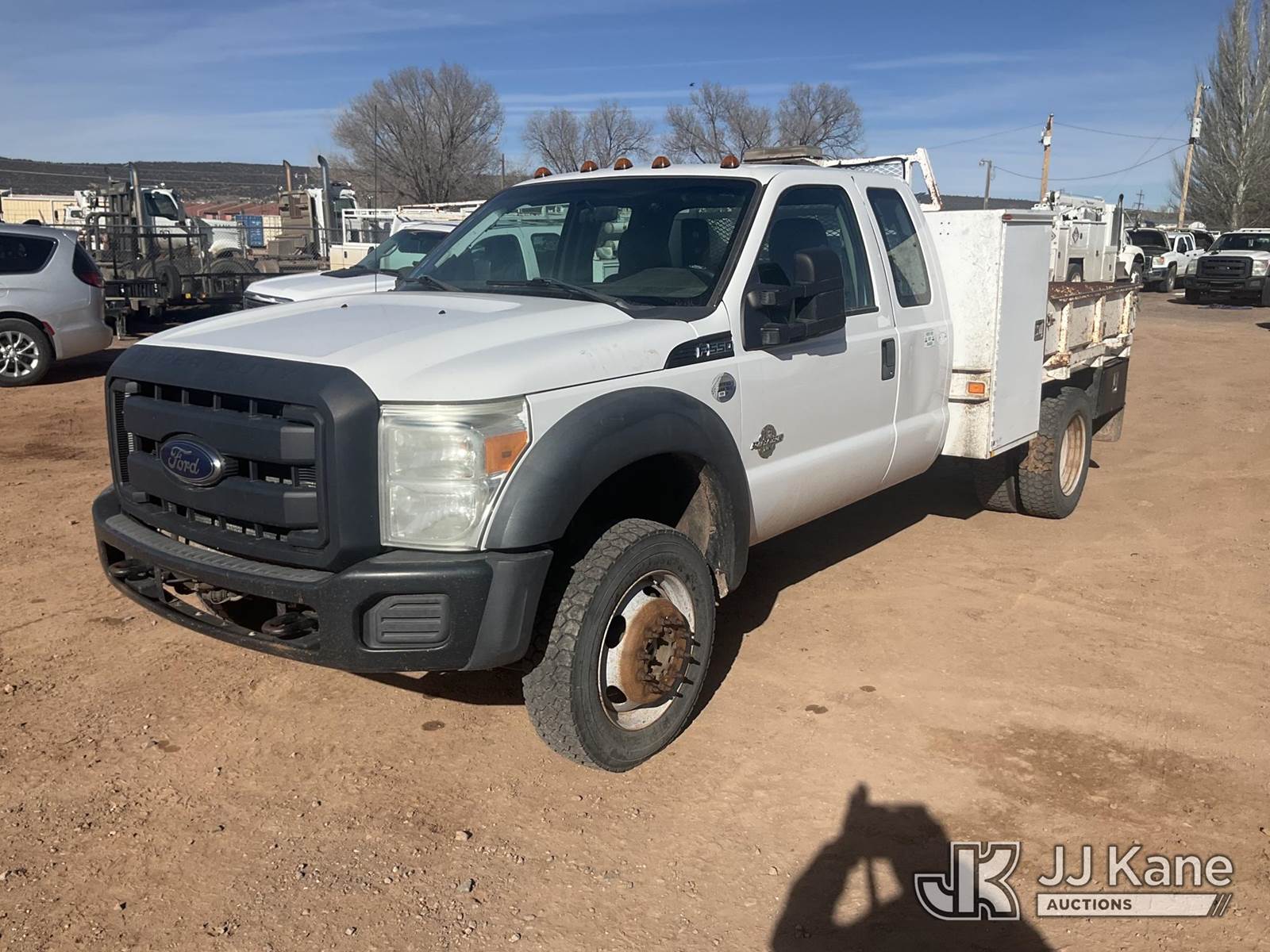 2012 Ford F550 4x4 Extended-Cab Flatbed/Service Truck, 6.7L V8 OHV 16V DIESEL, Auto, A/C, (288,622 miles) (Runs & Moves) (Airbag Light On, No A/C) This is a Titled Item NOTE: This unit is being sold AS IS/WHERE IS via Timed Auction and is located in Fort Defiance, AZ. Contact Carson Wenner at (480) 617-3620 for removal details. SCHEDULED LOAD-OUT on March 4th - 5th and 11th-12th Buyers must present a RELEASE FORM. Remove all lots within the specified dates to avoid 3rd party towing and holding costs. (Buyer is responsible for removal. Assistance by consignor or JJ Kane Auctions is not assured.)