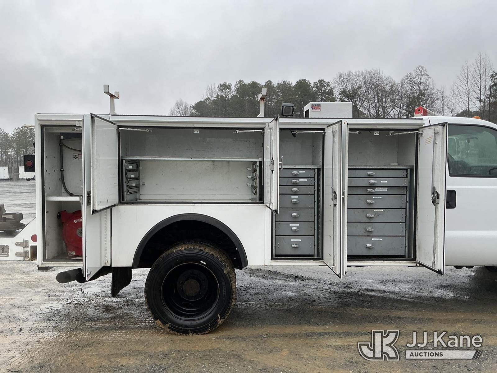 2012 Ford F550 4x4 Service Truck, 6.7L diesel, Auto, A/C, with AMERICAN EAGLE hyd air compressor w/ hose reel, (134,949 miles) (Runs & Moves) This is a Titled Item NOTE: This unit is being sold AS IS/WHERE IS via Timed Auction and is located in China Grove, NC. Inspection & preview days for this unit are the 2 business days prior to the first day of items closing for this auction, item is located at 820 E NC Hwy 152 China Grove, NC 28023 and hours of operations are 8a-4p. For pre-sale questions, please contact Office Staff @ (704) 674-1113. (Buyer is responsible for removal. Assistance by consignor or JJ Kane Auctions is not assured.)