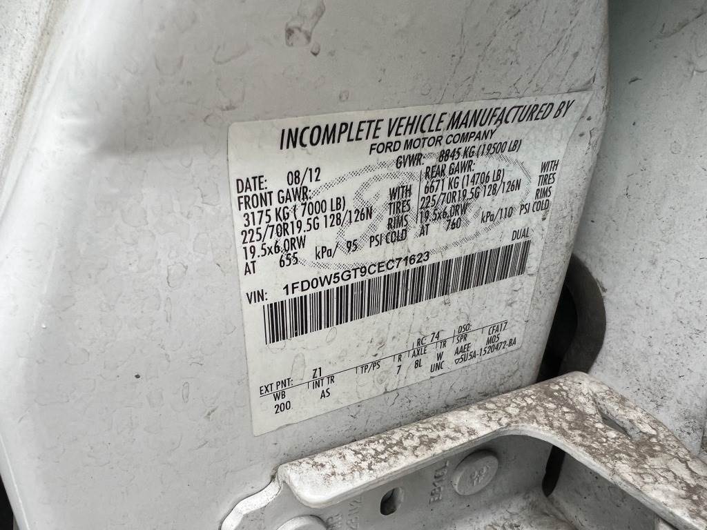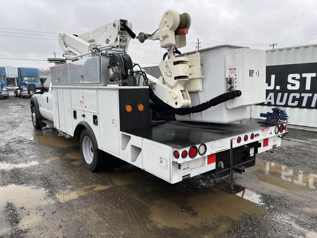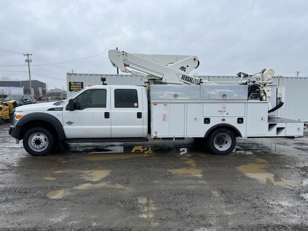 Location: Washougal WA ***City Government Surplus*** VIN: 1FD0W5GT9CEC71623 Engine: Power Stroke 6.7L 8cyl Diesel Transmission: Automatic *Oil leak* Versalift VST-40I articulating boom lift - 40' height, 350lb bucket capacity, utility body w/8 compartments, 2 side mounted truck tool boxes, hose reel w/hose, bumper mounted vise, running boards, tow package, work light, power windows, 13,598 engine hours, 7,030 engine idle hours, Chelsea PTO, A/C, AM/FM/CD/Bluetooth, rearview camera, spring suspension, 225/70R19.5 tires. Miles: 158,833