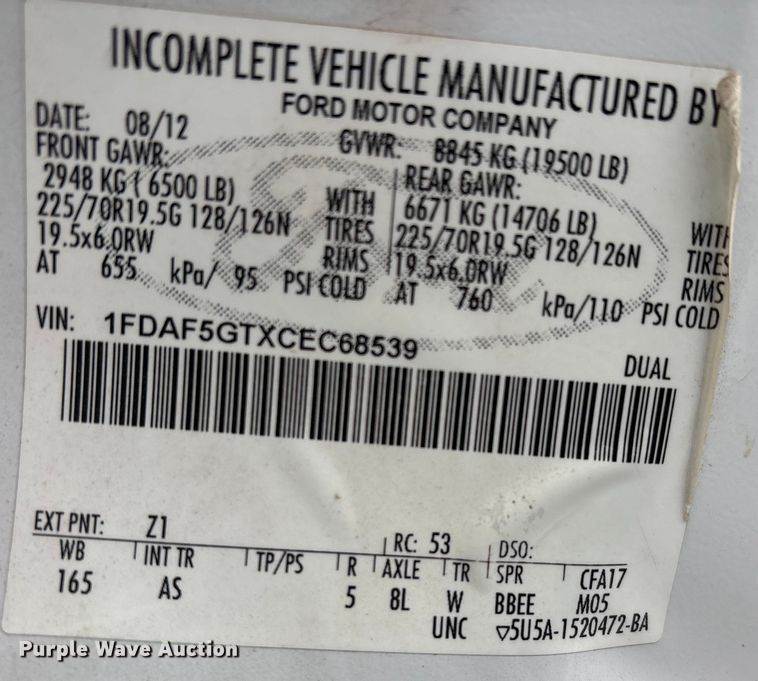VIN: 1FDAF5GTXCEC68539