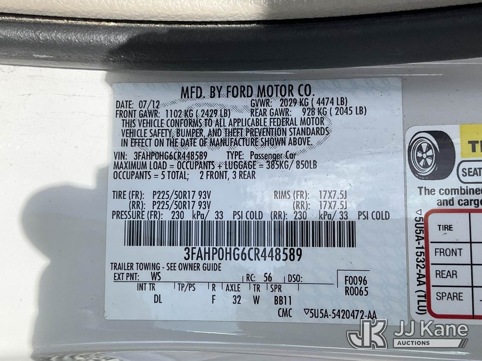 2012 Ford Fusion 4-Door Sedan, 6-cyl gas, Auto, A/C, (49,716 miles) (Runs & Moves) This is a Titled Item NOTE: This unit is being sold AS IS/WHERE IS via Timed Auction and is located in Salt Lake City, UT. Inspection & preview days for this unit are the 2 business days prior to the first day of items closing for this auction, item is located at 2353 N Redwood Rd Salt Lake City, UT 84116 and hours of operations are 8a-4p. Titles executed exactly as bidder registered. Ensure your name and/or business name and address in JJ Kane and/or ProxiBid is correct before bidding. For pre-sale questions, please contact Office Staff @ (801) 519-0123. (Buyer is responsible for removal. Assistance by consignor or JJ Kane Auctions is not assured.)