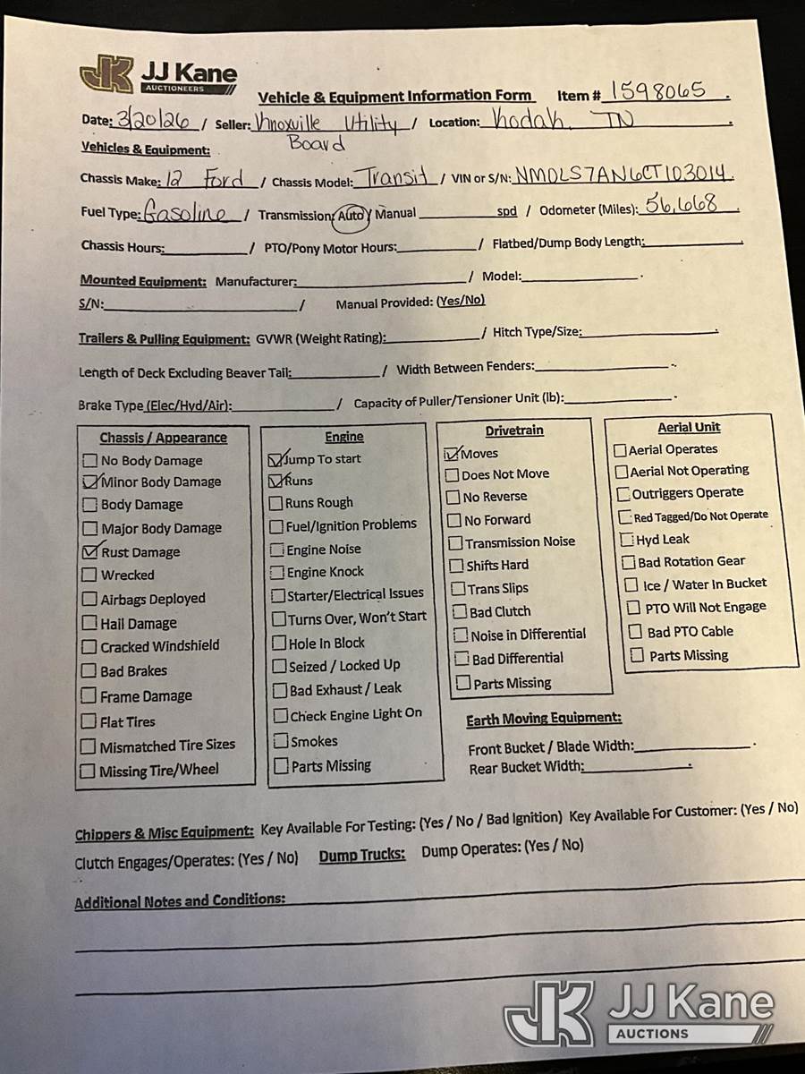 2012 Ford Transit Connect Mini Cargo Van, 4-cyl gas, FWD, 4-Speed Automatic, (56,668 miles) (Runs & Moves) (Jump to Start, Rust Damage, Minor Body Damage) This is a Titled Item NOTE: This unit is being sold AS IS/WHERE IS via Timed Auction and is located in Kodak, TN. Inspection & preview days for this unit are by appointment only; please contact us at contact@jjkane.com or 84-Go-JJKane for more details. (Buyer is responsible for removal. Assistance by consignor or JJ Kane Auctions is not assured.)