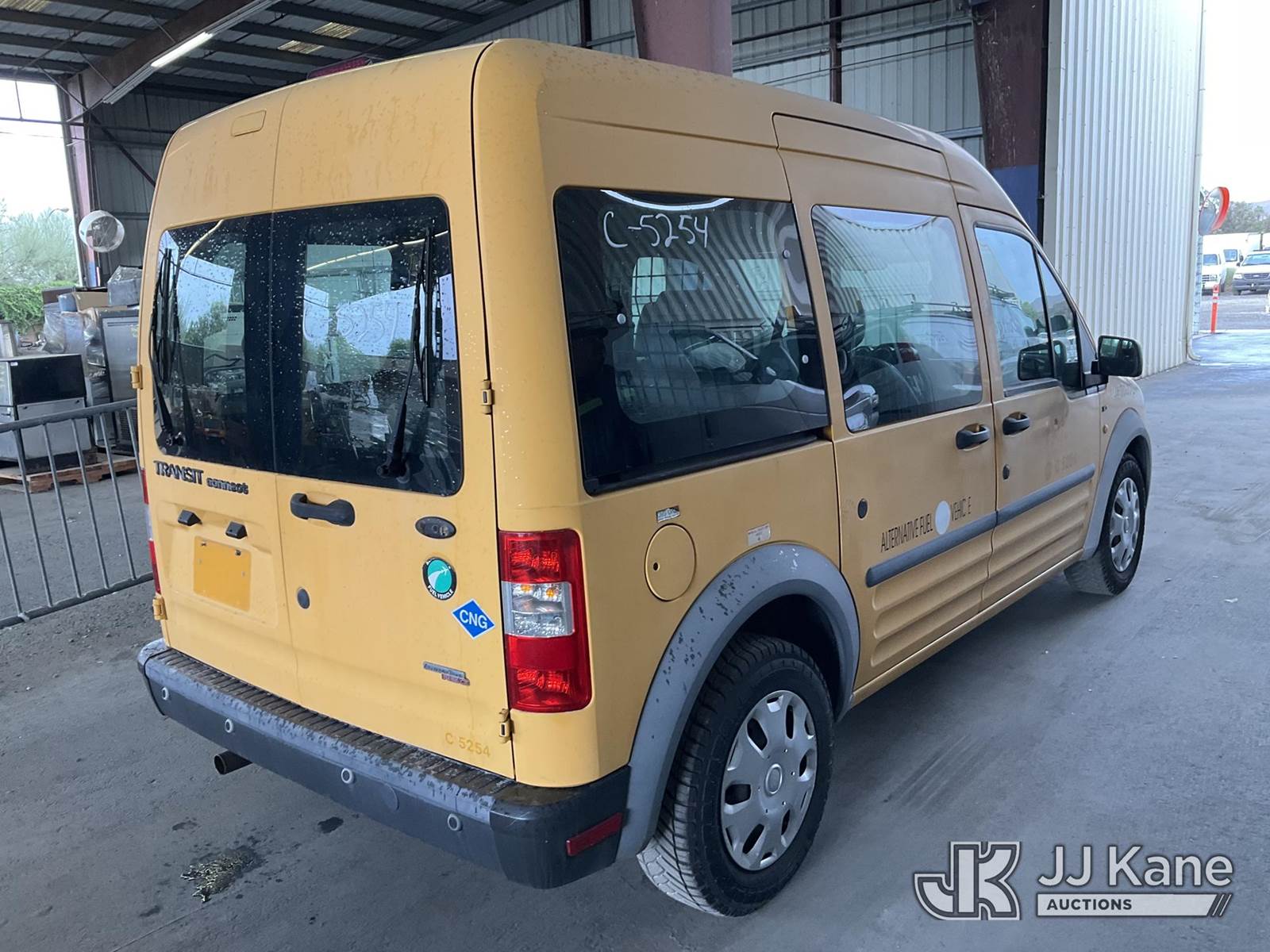 2012 Ford Transit Connect Mini Passenger Van, 4-cyl gas, 4-Speed Automatic, CNG Only, A/C, (119,517 miles) (Runs & Moves ) This is a Titled Item NOTE: This unit is being sold AS IS/WHERE IS via Timed Auction and is located in Jurupa Valley, CA. Inspection & preview days for this unit are the 2 business days prior to the first day of items closing for this auction, item is located at 4510 Muth Way Jurupa Valley, CA 92509 and hours of operations are 8a-4p. For pre-sale questions, please contact please contact Office Staff @ (310) 353-7140. Dealer License Number 45696. (Buyer is responsible for removal. Assistance by consignor or JJ Kane Auctioneers is not assured.)