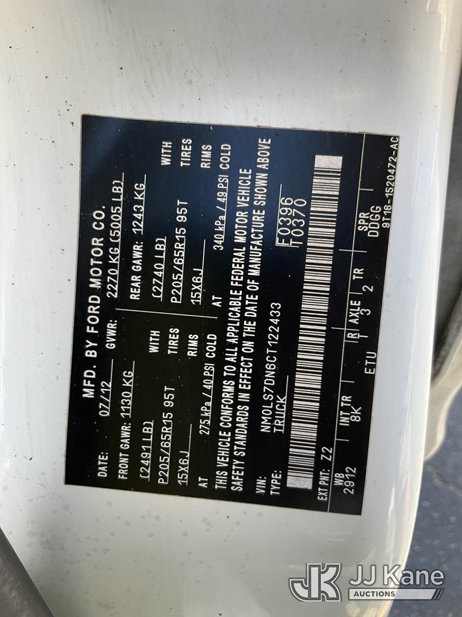 2012 Ford Transit Connect XLT Cargo Van, 4-cyl gas, FWD, Auto, A/C, (73,763 miles) (Runs & Moves) This is a Titled Item NOTE: This unit is being sold AS IS/WHERE IS via Timed Auction and is located in Ocala, FL. Inspection & preview days for this unit are by appointment only; please contact us at contact@jjkane.com or 84-Go-JJKane for more details. For more information & removal arrangements please contact Mike Lessard @ (352) 629-6677. (Buyer is responsible for removal. Assistance by consignor or JJ Kane Auctions is not assured.)