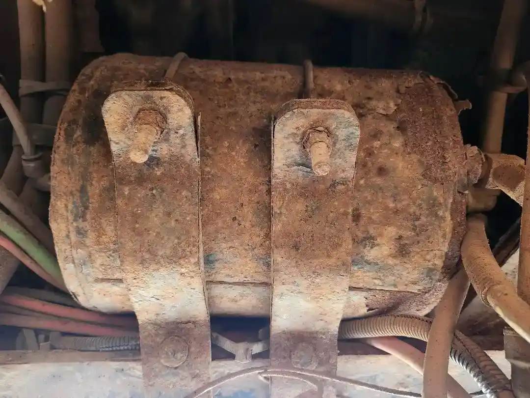 (Used) 2012 Freightliner 114SD, AIR TANK (3)- Side: Driver Left Side, Location: Inside Frame, Material: Steel, Dimensions: L=10", D=9", Front Ports: 2, Rear Ports: 1, Side Ports: 0, It's Rusty!! Reference images for condition, For more information about this item, give us a call. We ship Worldwide! (CRG HEAVY TRUCK PARTS) 929 W PULASKI HWY, ELKTON, MD 21921, Material: Steel