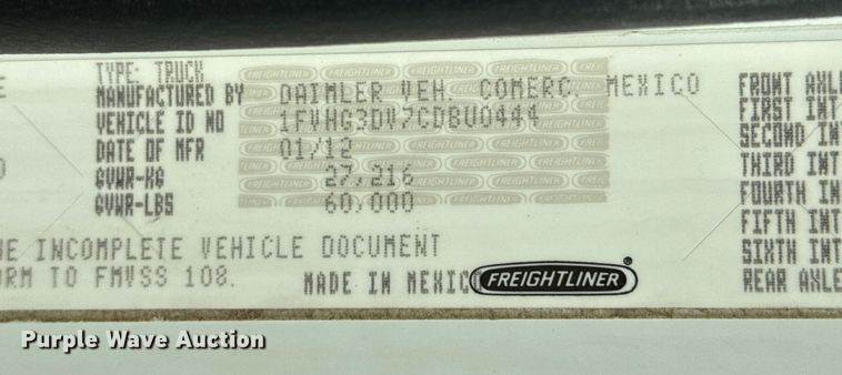 2012 Freightliner Business Class M2 crane truck, Miles: 88,729 on odometer, Hours: 8,674 on meter, VIN: 1FVHC3BS7CDBP4193, Engine, Cummins...