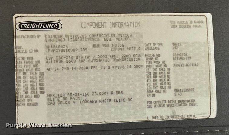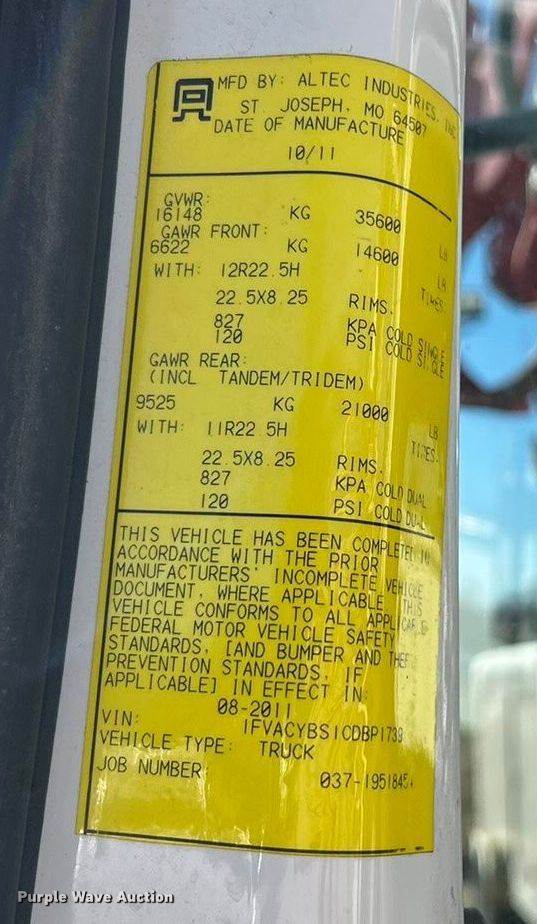 2012 Freightliner Business Class M2 digger derrick truck, Miles: 103,969 on odometer, Hours: 9,637 on meter, VIN: 1FVHCYBS2CHBR7810,...
