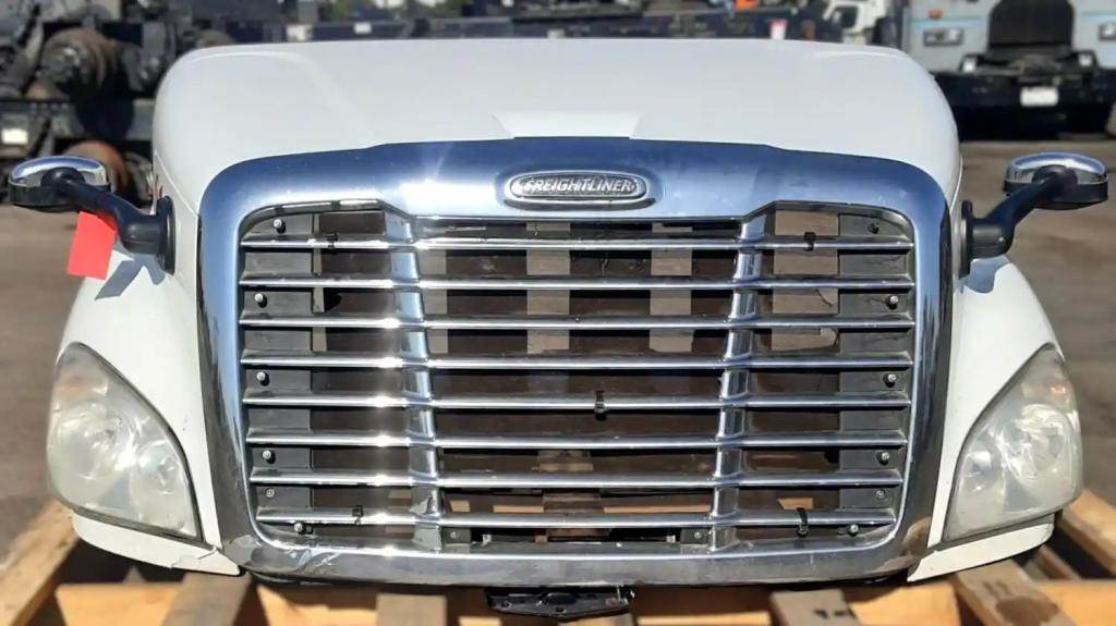 2012 Freightliner Cascadia 113 Hood, 36.5" L, Set Back Axle, P/N A17-15588-000 (Replaced By A17-15588-010). Cracked Grille On Lower RH Corner, Cracked Panel Below Both Headlights. Includes RH & LH Mirrors.