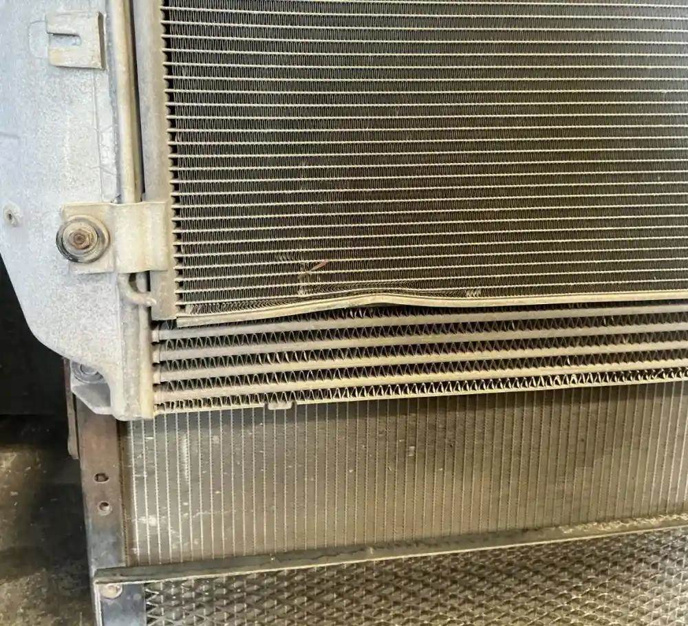 Cooling Assembly, Complete, Include RAD, CAC and Condenser (Condenser Damaged), No Overflow Tank. Radiator 42 1/8" x 38", 2 1/2" Inlet - Upper Right, 2 1/2" Outlet - Lower Right, Oil Cooler 12" Centers. P/N A05-29627-002 (Replaced By 05-31114-002), 05-29