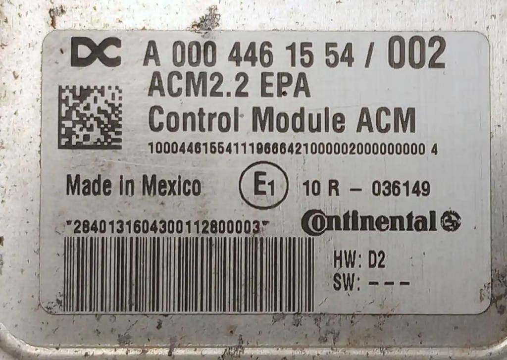 2012 Freightliner Cascadia 125, DD15 Aftertreatment Control Module ACM 2.2 EPA, Part # A0004461554 / 002. All ACM's sold with a 30 day “parts only†warranty. In the event of failure, the ACM will be replaced or a refund will be issued. Warranty do