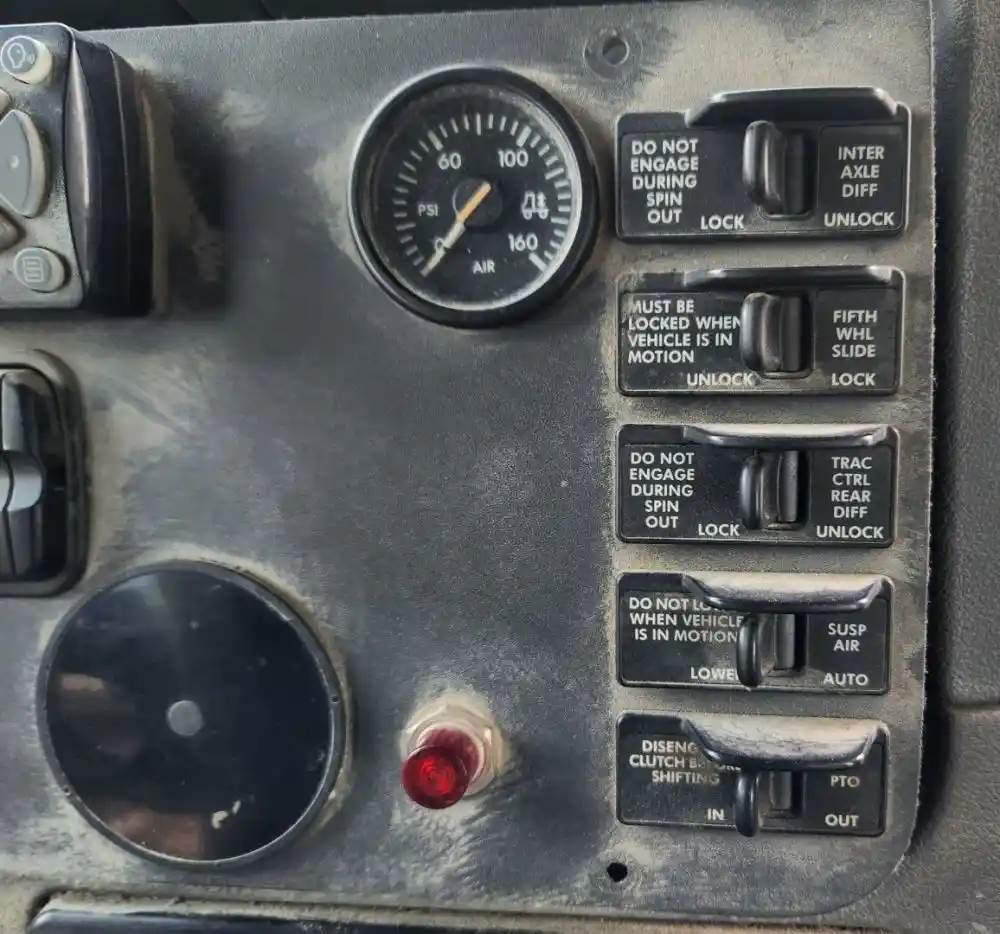 (Used) 2012 Freightliner Cascadia 125, MISCELLANEOUS DASH SWITCHES- Controls: Trailer Brake, OPT (1), OPT (2), Inter Axle Diff, Fifth Wheel Slide, Trac Ctrl Rear Diff, Susp Air, PTO, Gauges: Air Pressure, Material: Plastic, For more information about this item, give us a call. We ship Worldwide! (CRG HEAVY TRUCK PARTS) 929 W PULASKI HWY ELKTON, MD 21921, Material: Plastic